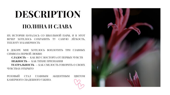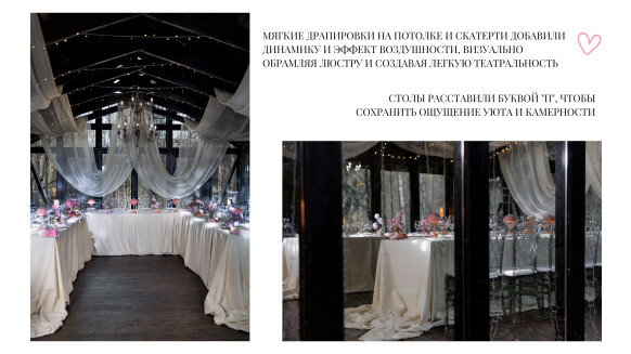 Не каждая свадьба требует сложной концепции — иногда достаточно просто создать красоту, которая органично впишется в пространство.