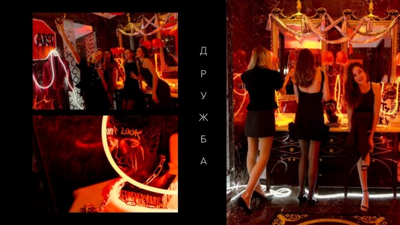 Особое внимание – джакузи, наполненный "чёрной икрой", создающий эффект избыточной роскоши и сюрреализма. В сочетании с красным сценическим светом, неоновыми вывесками и металлическими текстурами, преобразует пространство до неузнаваемости. Здесь невозможно просто наблюдать – пространство вовлекает, провоцирует и заставляет запомнить этот вечер навсегда.