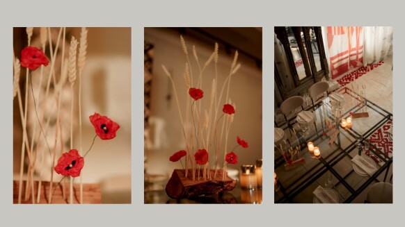 - 200 маков из красной органзы, которые мы тоже создавались вручную, чтобы добавить легкости на столах к колосьям пшеницы.