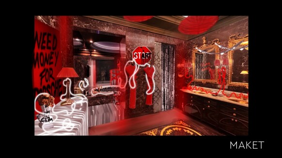 Создали иммерсивное арт-пространство, где роскошь сталкивается с уличной культурой, а анархия гармонично вписывается в интерьер высшего класса. "Urban Glow" – это эстетика клубного андеграунда, неоновых огней, граффити и провокации, превращающая функциональную зону в ключевое место вечеринки.