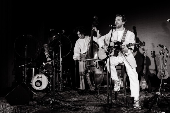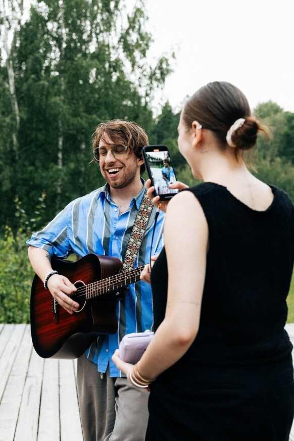 Интерактивное шоу, где зрители - часть ансамбля. Формат уютного и стильного квартирника, где мы общаемся с гостями, поем песни по заявкам и играем в музыкальные игры. Разрешаем себе и зрителям дурачиться, смеяться и быть собой. А солист и лидер группы - Лев, путешествует с гитарой и предпринимателями по всему миру (Тайланд, ЮАР, Байкал, Япония, Панама, Алтай) Составы: Акустическое трио с контрабасом и перкуссией (попеть) Квартет с барабанами и клавишами (попеть и потанцевать) и соло Льва с песнями под гитару