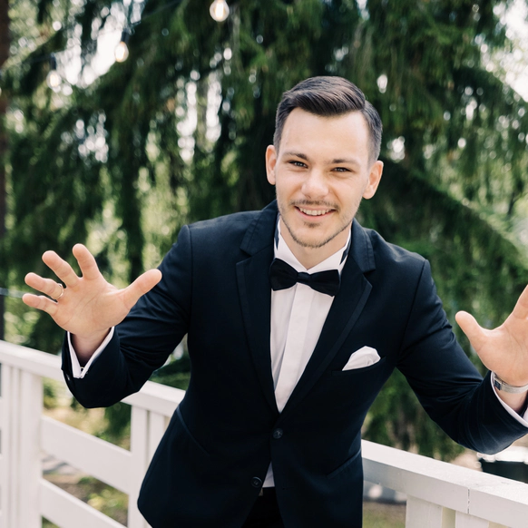 Душевный, искренний, музыкальный, интеллигентный ведущий с добрым юмором - так меня видят заказчики. ◆ Выпускник Санкт-Петербургской Школы Телевидения и Федеральной Школы Радио; ◆ Окончил СПбГУ Кино и Телевидения с красным дипломом (аудиовизуальная техника); ◆ Постоянно повышаю свои навыки ведущего на форумах, мастер-классах, курсах для ведущих. ◆ Певец. Пою под собственные аранжировки и под гитару известные и всеми любимые песни. ◆ Веду ЗОЖ, изучаю свой организм, питание, психосоматику. ◆ Умею профессионально парить в бане и вкусно заваривать чай. P.S.: лучше всего обо мне вы узнаете, посмотрев моё музыкальное промо.