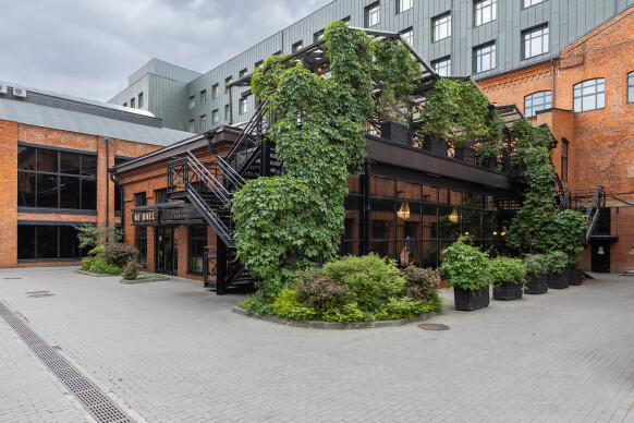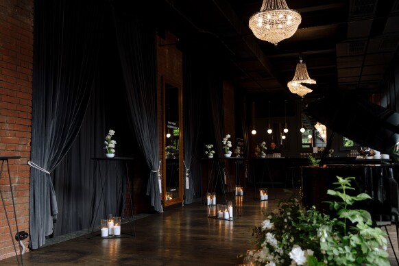 MJ Hall расположен на закрытой территории премиального Loft-квартала Даниловская Мануфактура, где гармонично переплетается архитектурное наследие 19 века и современные дизайнерские решения. Особняк идеально подходит для мероприятий любого формата: свадеб с торжественной церемонией, семейных торжеств, детских праздников, бизнес-конференций, корпоративных вечеров и бизнес-бранчей. 1 этаж вмещает два смежных зала, общей площадью почти 300м2, с панорамным остеклением, каскадом хрустальных люстр , большой барной стойкой и комфортной мягкой мебелью. Плотные бархатные портьеры в высоких кирпичных порталах легко зонируют пространство особняка на 2 зала. Основной зал оснащен центральным четырехметровым светодиодным экраном, профессиональным световым и музыкальным оборудованием, а высота потолка 9 метров дает возможность для выступления воздушных гимнастов. Открытая веранда, утопающая в зелени, располагается на крыше особняка. Скрытая от городского шума, станет идеальным местом для проведения выездной церемонии. Особую романтику и камерность добавляет винтажная гирлянда, теплое свечение которой, летними вечерами создает ни с чем не сравнимую атмосферу.