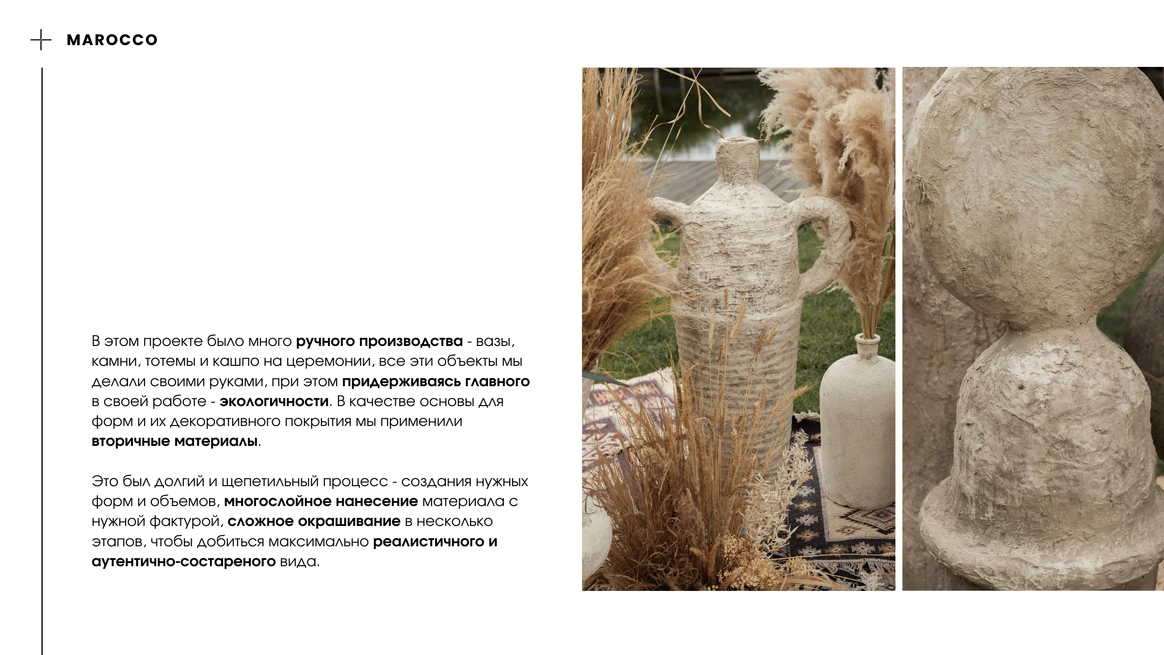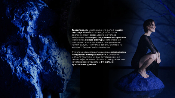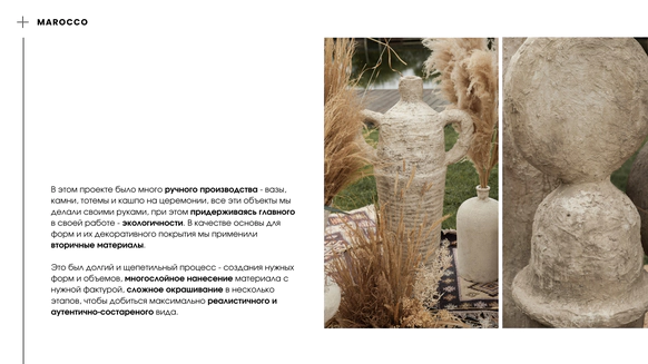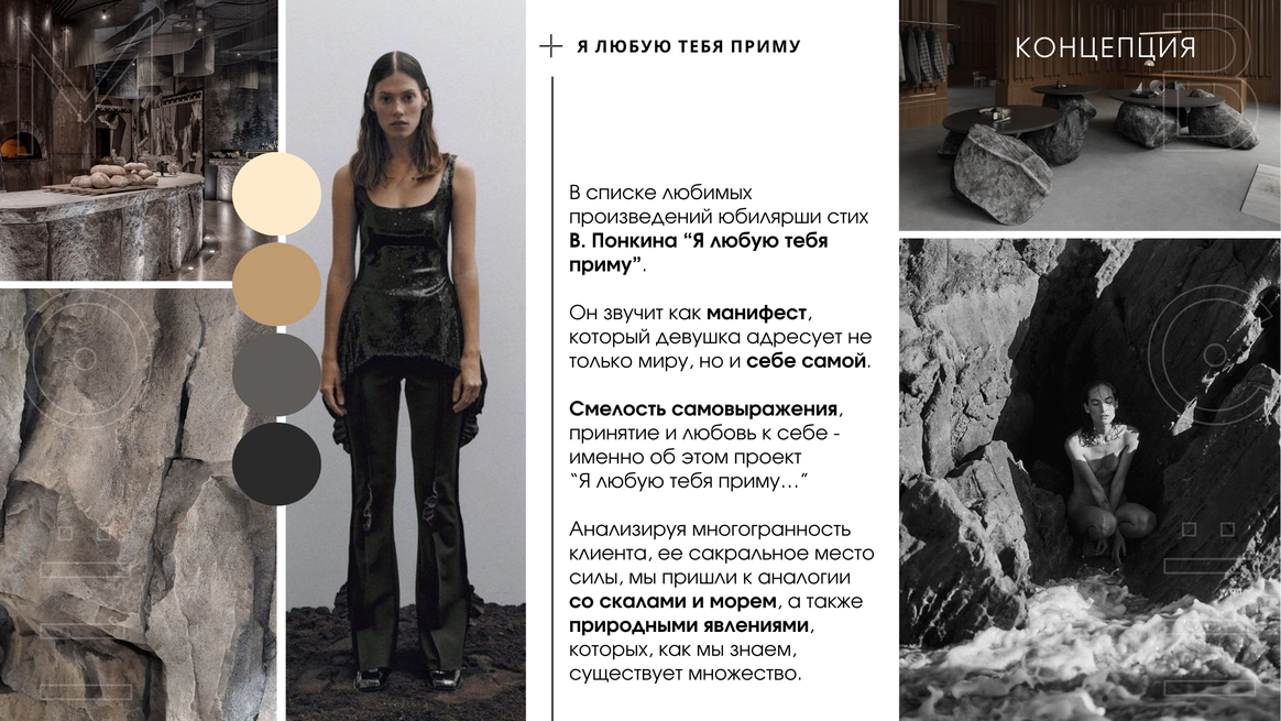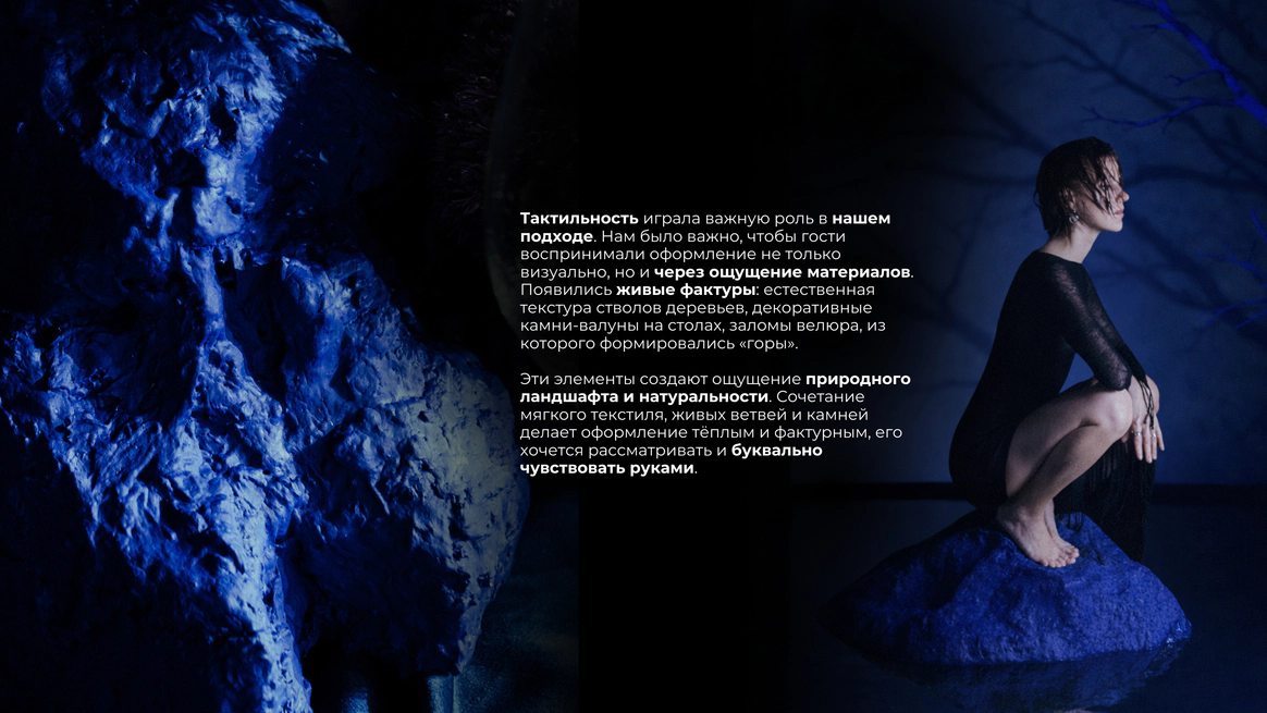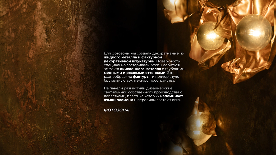 Мы создаём пространство с характером, где человек может раскрыться, переосмыслить себя и выразить свою природу. Оно становится живым, взаимодействует с гостем, вовлекает его и помогает прожить момент осознанно и глубоко. Моё всё — это путь через диалог с ощущениями, тактильностью, объемом и светом. Мы избегаем плоских решений, наполняя каждую деталь глубиной, фактурой и смыслом. В основе наших проектов разговор природы с нестандартными материалами, эксперименты с формами и пространством. Мы соединяем несовершенное и живое, органику и индустрию, превращая привычное в новое и неожиданное. Ставим фокус на экологичность, постоянно экспериментируем с материалами, разумно используя природные ресурсы и кастомизируя материалы. В нас видят ценность те, кто не боится выйти за рамки традиционных представлений и ценит смысл в деталях.
