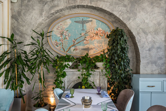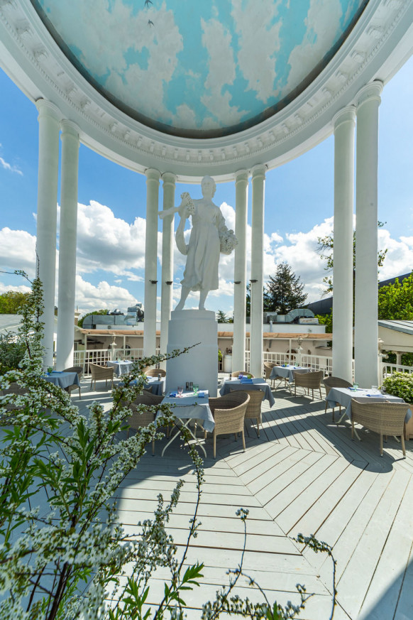 Ресторан «Московское Небо» — одна из самых роскошных площадок Москвы, расположенная на территории парка ВДНХ по соседству с Дворцом Бракосочетаний. 2 зала ресторана — малый и большой — идеально подходят для проведения свадебных торжеств: один из залов вмещает до 40 человек, другой — до 80. Просторный холл позволяет деликатно разделять поток гостей для общего комфорта. Лёгкий, воздушный интерьер в небесно-голубых тонах, утопающий в зелени и солнечном свете, дарит удовольствие и ощущение расслабленности. Наша особая гордость — фрески в жанре соцреализма, оммаж советским художникам и напоминание об историческом прошлом павильона — приведут в восхищение вас и гостей вашего праздника. Панорамные окна, изящная мебель и приятные глазу мелочи обстановки не потребуют от вас серьезных дополнительных затрат на декор. Отдельного внимания заслуживает наша авторская кухня, где в современных гастрономических тенденциях переосмыслены знакомые всем традиционные блюда. Непременный атрибут любого свадебного торжества — торт — можно заказать в нашем кондитерском цехе.