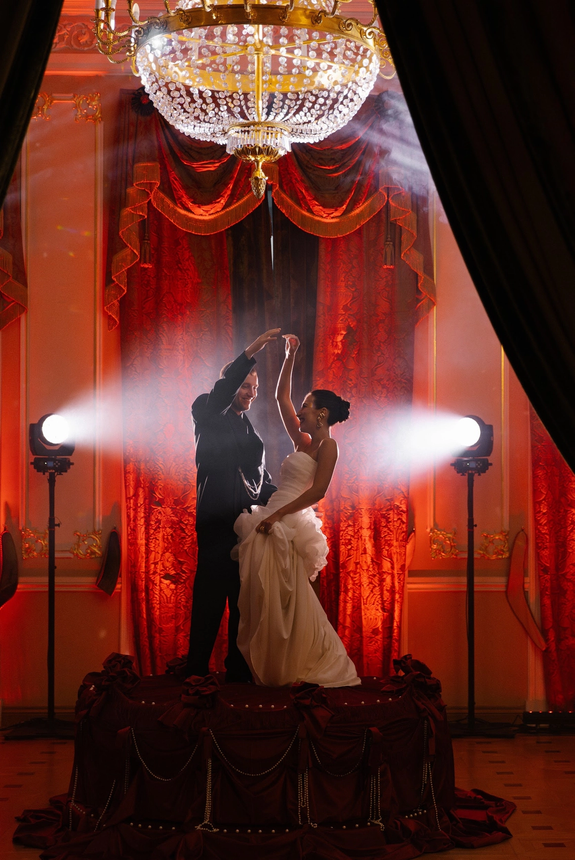 Фразу «Так влюбляться никто не планировал» сделали центром шоу. Придумали две арки: первая с падающей шторой, вторая с неоном.