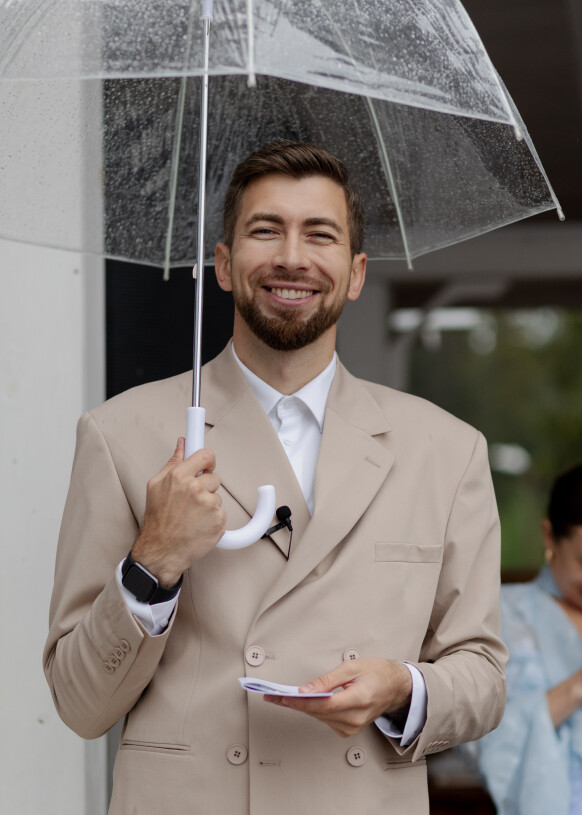 «Осознаю — значимость своего участия в проектах. Получаю — истинное удовольствие от каждого дня, прожитого вместе» Голос - мой инструмент. • Выпускник школы радиоведущих и школы озвучки и дубляжа. О спорте. • 12 лет профессионально занимался футболом - где научился командной работе. Лучшие дни в жизни. • Моя свадьба с любимой женой • Когда у нас появился псын Бруно (последнее фото) • По образованию «Педагог» - нахожу язык с разными людьми. • С 30 лет начал исполнять… свои детские мечты: сделал коррекцию зрения, слетал в Японию, встал на вейкборд, начал играть в теннис. А жена говорит - «это кризис среднего возраста».