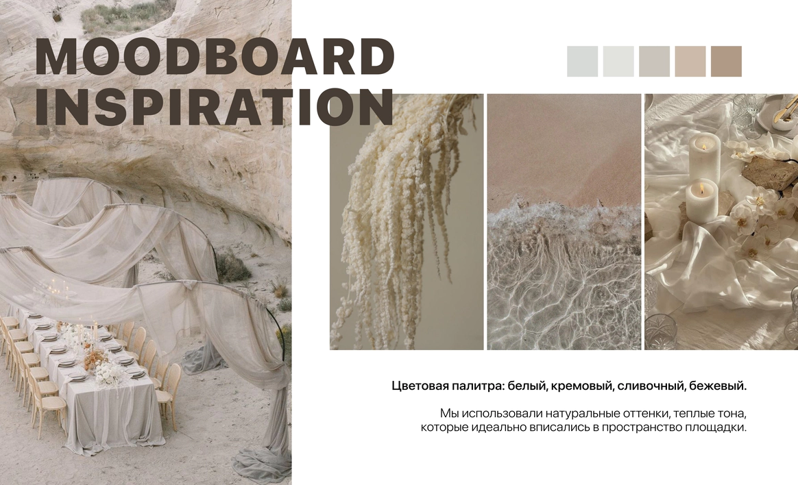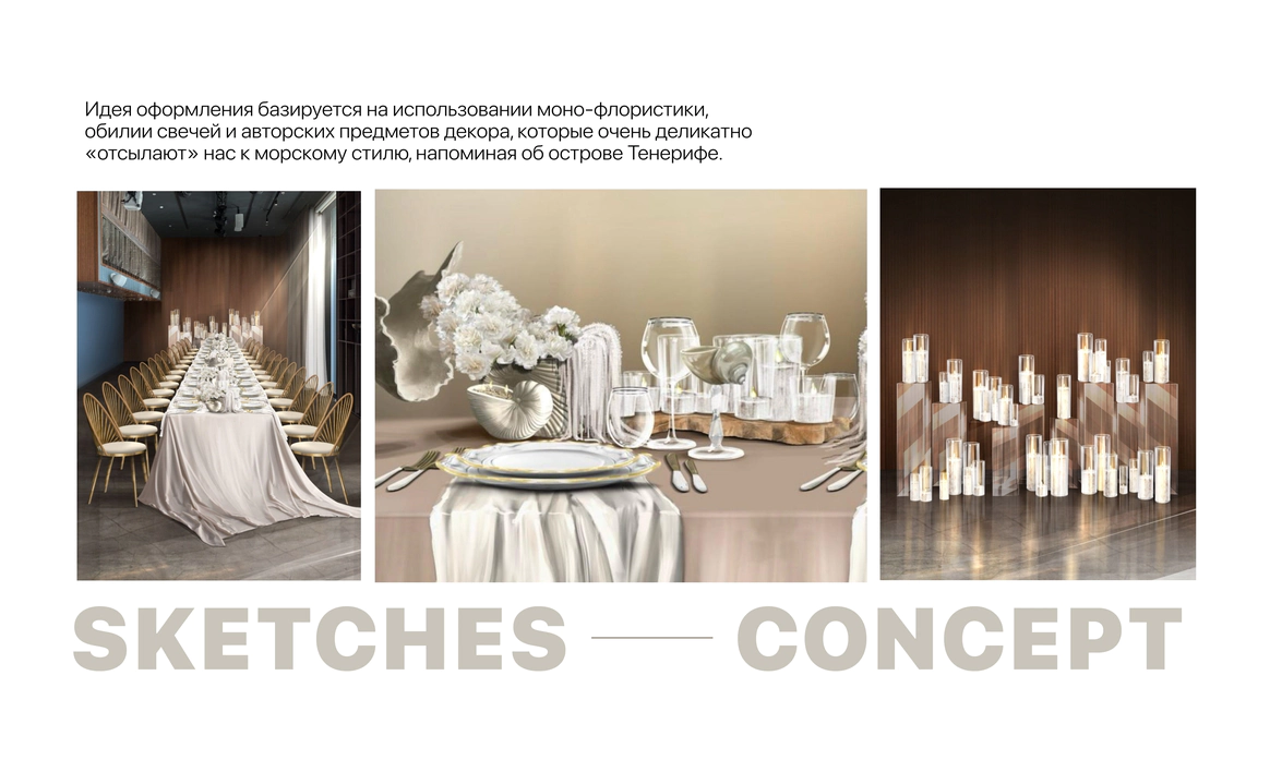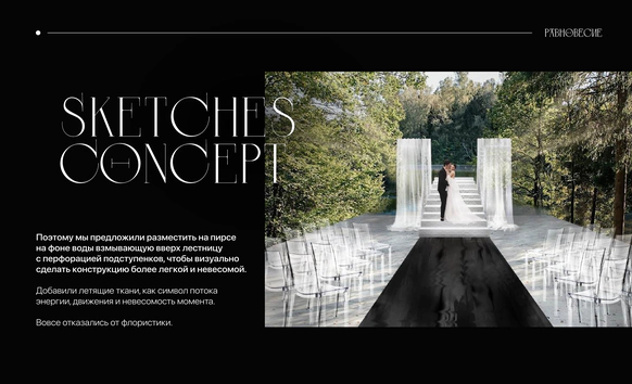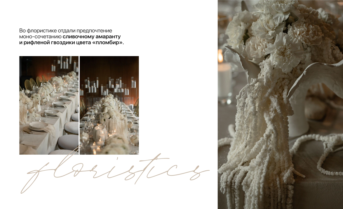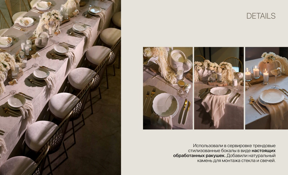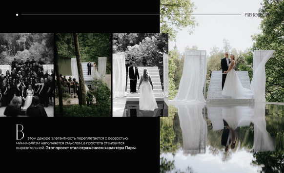 Наша Команда создала этот свадебный проект, используя чистые элегантные решения, он построен на тонком балансе форм, фактур и цвета, где каждая деталь мягко подчеркивает общее ощущение спокойной, выверенной эстетики.
