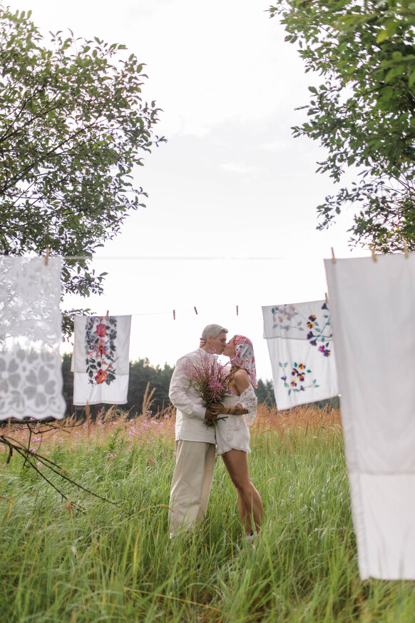 Ивана отпустили в отпуск только на свадьбу.Он сейчас находится в зоне проведения Спецоперации.Ребятам очень хотелось отразить в торжестве всю глубину любви к Родине,дому,близким и друзьям.Несмотря на то,что торжество было на 120 человек,пара очень хотела,чтобы все гости чувствовали тепло и силу семейных ценностей и традиций.Разный орнамент матрешек говорил о том,что мы непохожие друг на друга,но мы все являемся частью семьи.Сила в принятии этих разностей.Каждый гость унес собой на память об этом торжестве деревянную маленькую матрешку.Первоцветы во флористике символизировали пробуждение от зимней спячки всего вокруг.Сшитые специально для этого торжества петух,курица и цыплята добавляли уюта,домашнего настроения,и еще раз подчеркивали ценность семьи для каждого.