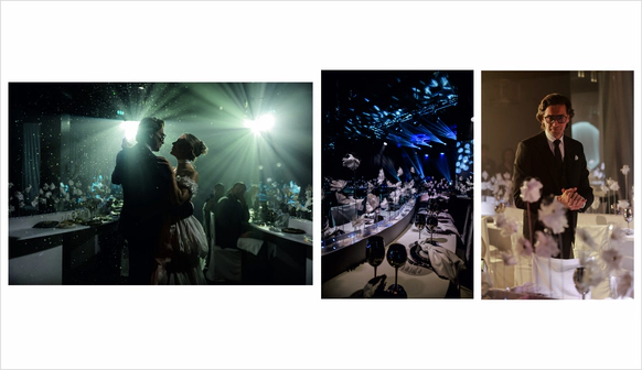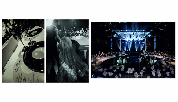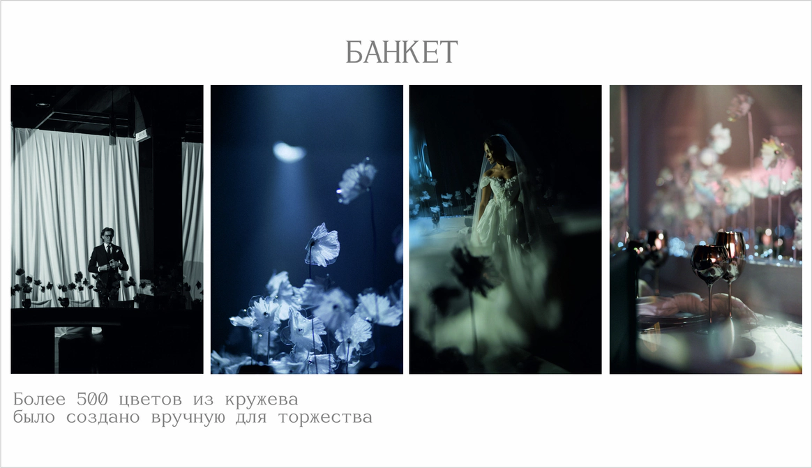 Свадьба экс-вратаря Сборной России по футболу Руслана Нигматуллина и его прекрасной Эвелины.Пара зарегистрировала свой брак в круизе по Средиземному морю.Очень хотели торжество в морской стилистике без прямой отсылки к стандартным приемам свадеб в этой атмосфере.Был выбран белый цвет,как визуальная параллель с морской пеной.Ажурность пены было решено отразить в кружевных цветах и других элементах декора.
