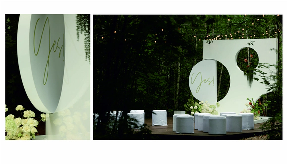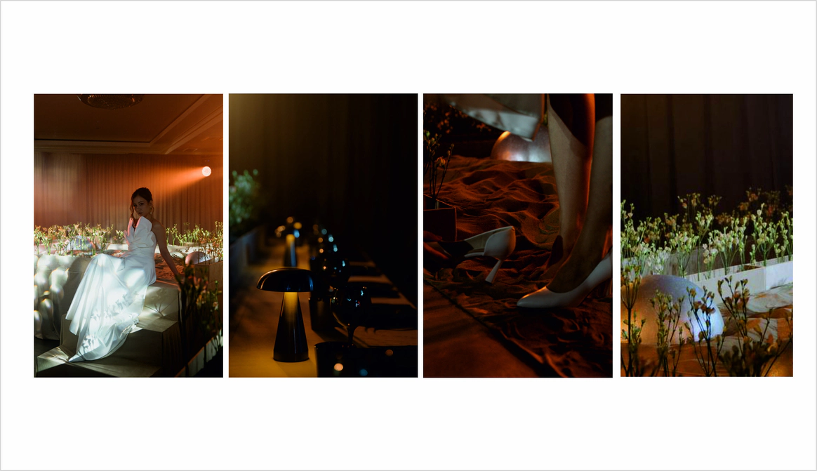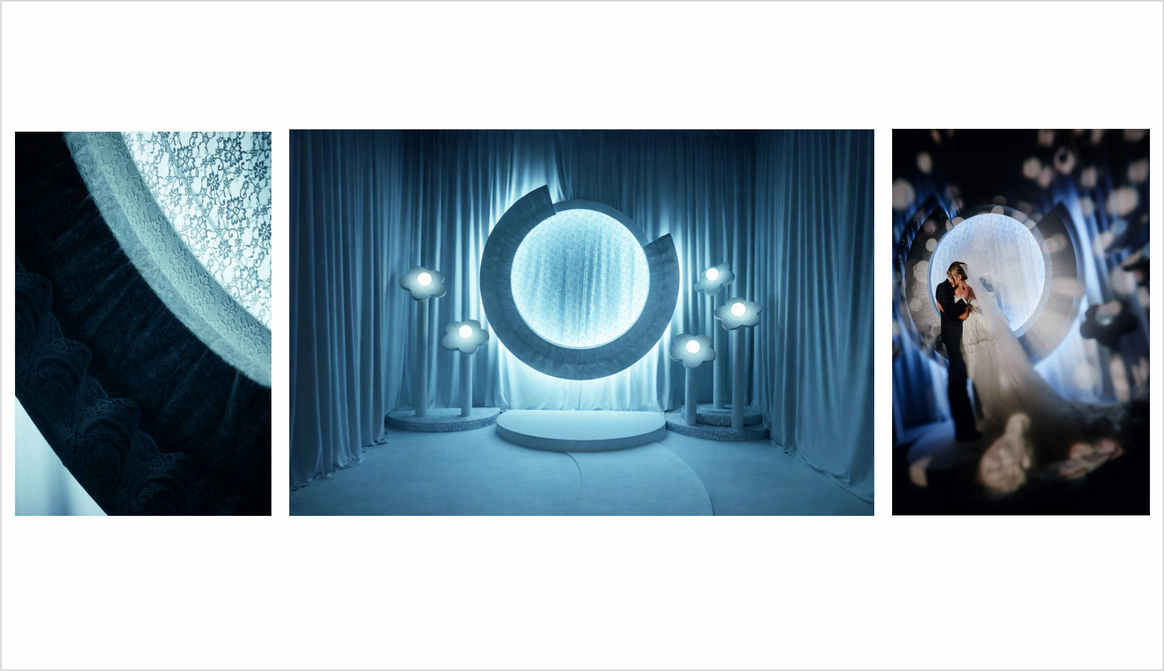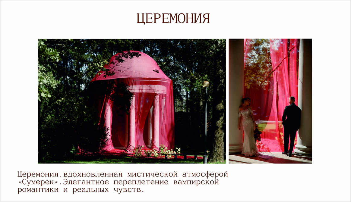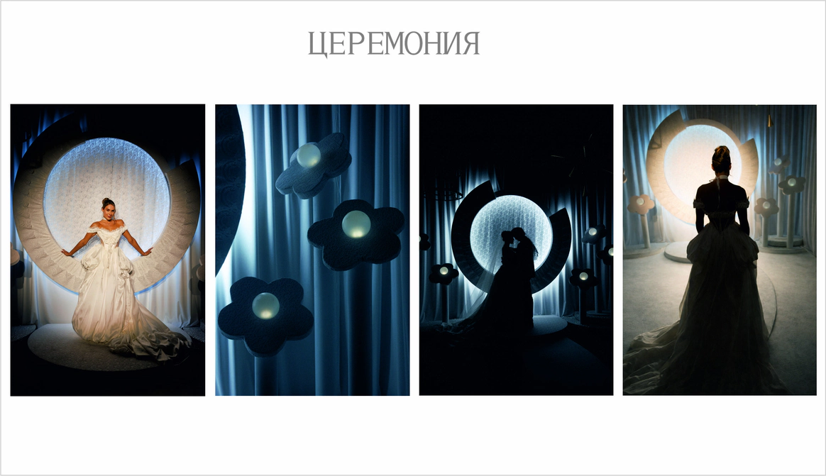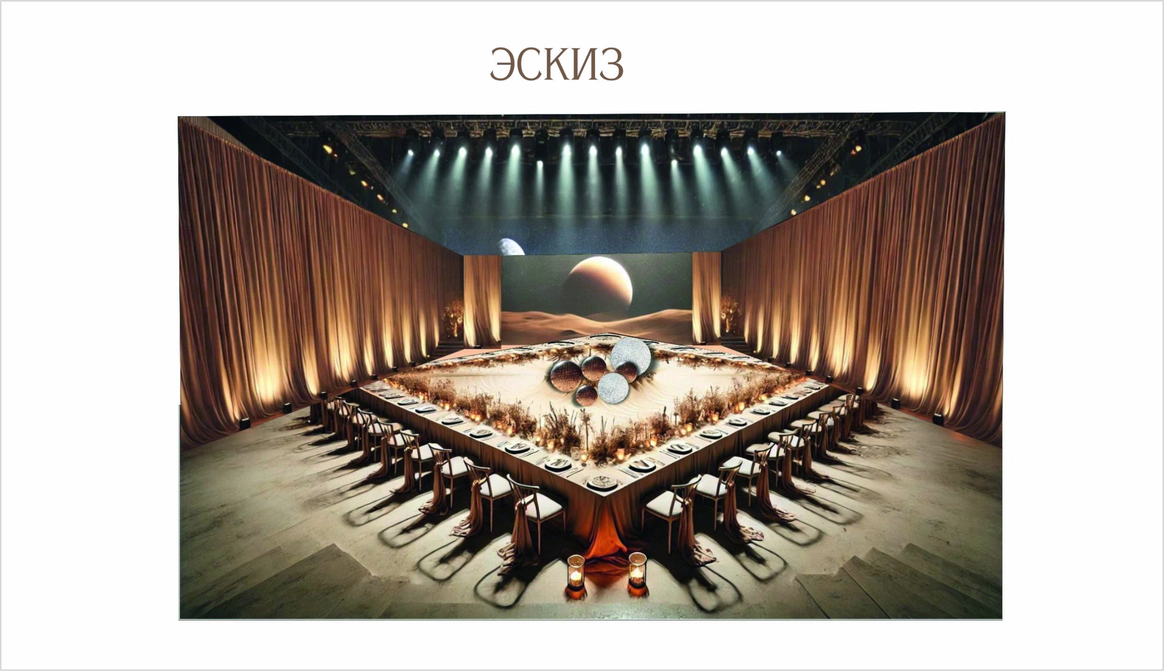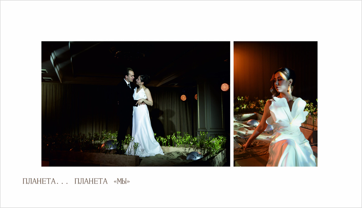 Первое свидание пары прошло в музее Космонавтики.Ребята считают,что предсказание истории их любви написано звездами.Оба родились под влиянием очень сильных планет.У Ивана планета Юпитер,у Дарии-Медины-Венера.И даже,взглянув на небо,видно,что эти планеты находятся рядом друг с другом.В декоре хотелось создать атмосферу Марсианского пейзажа,с теплым светом и минималистичной инопланетной флористикой.Цветы в песках,как символ силы жизни и их любви.