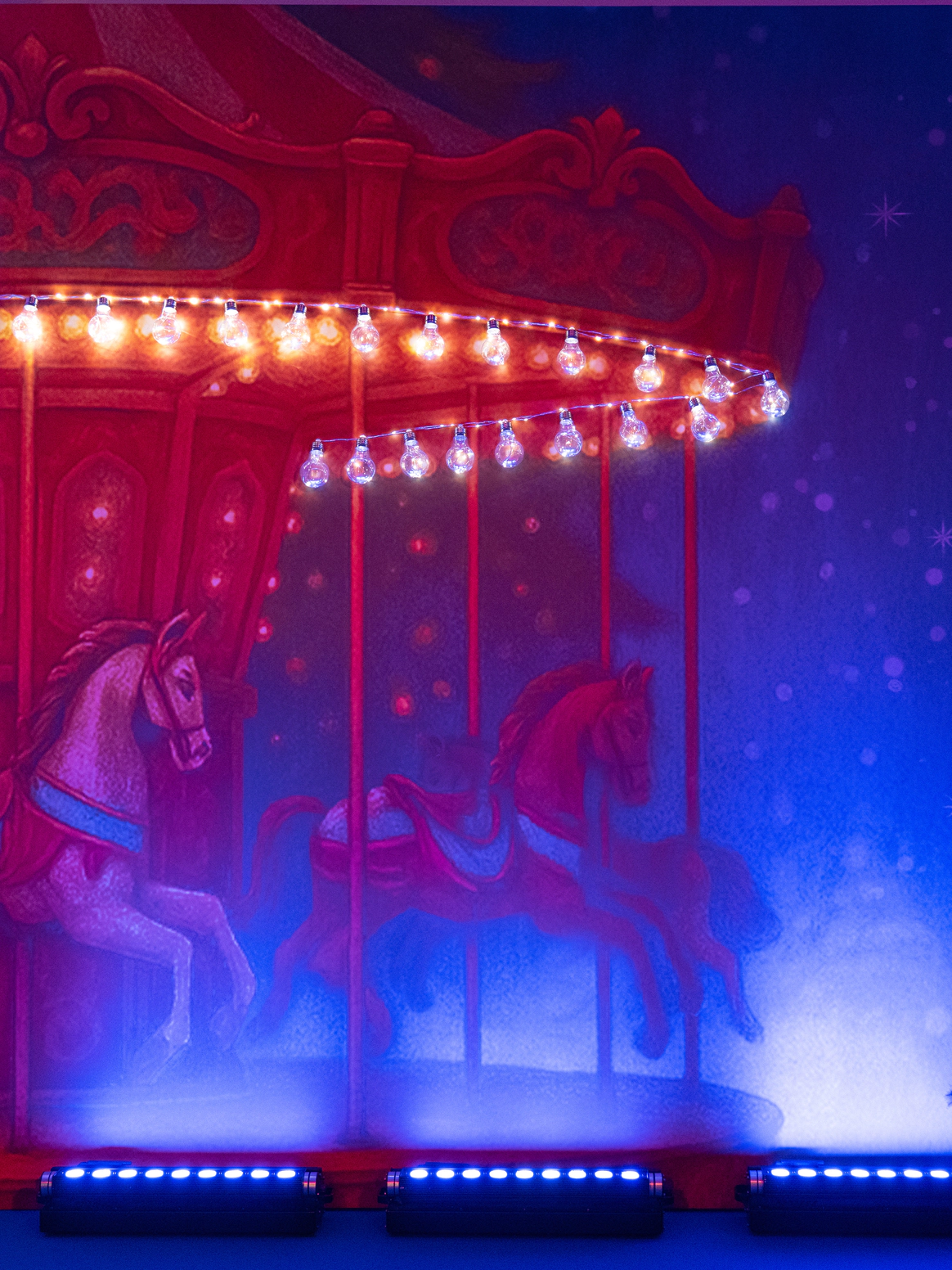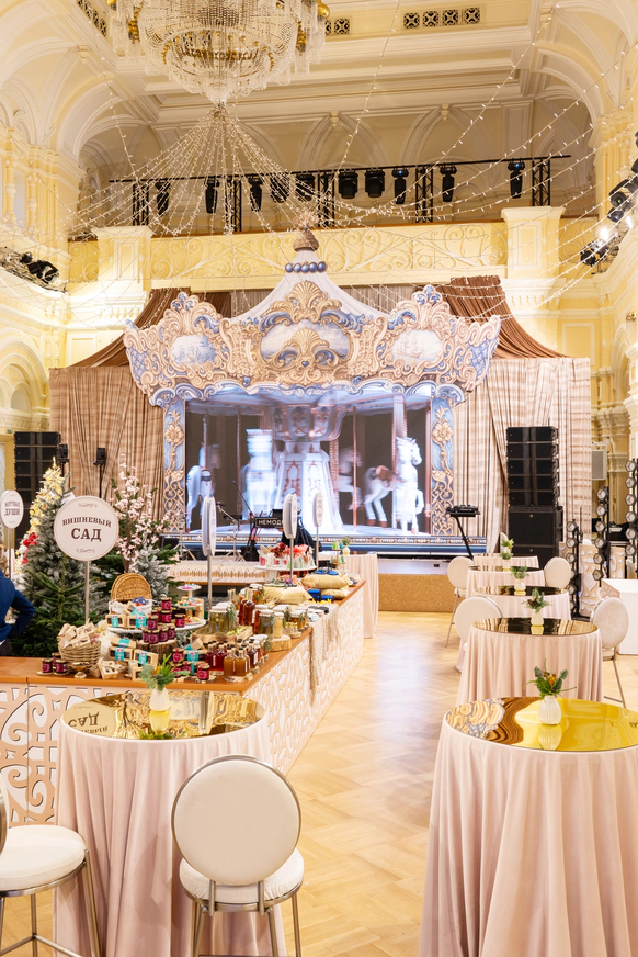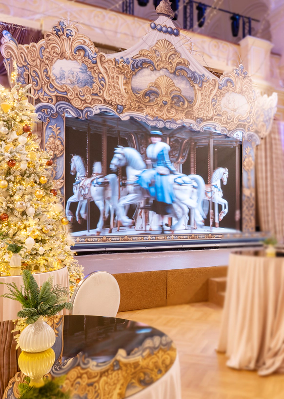 Сцену оформили как гигантскую музыкальную карусель — символ времени и повторяемости ценностей. Внутри декоративной конструкции видеопроекция с вращающимися лошадьми и всадниками создавала точную 3D-иллюзию живой игрушки. Этот образ стал визуальной метафорой бренда: устойчивость, движение вперёд и уважение к традиции.