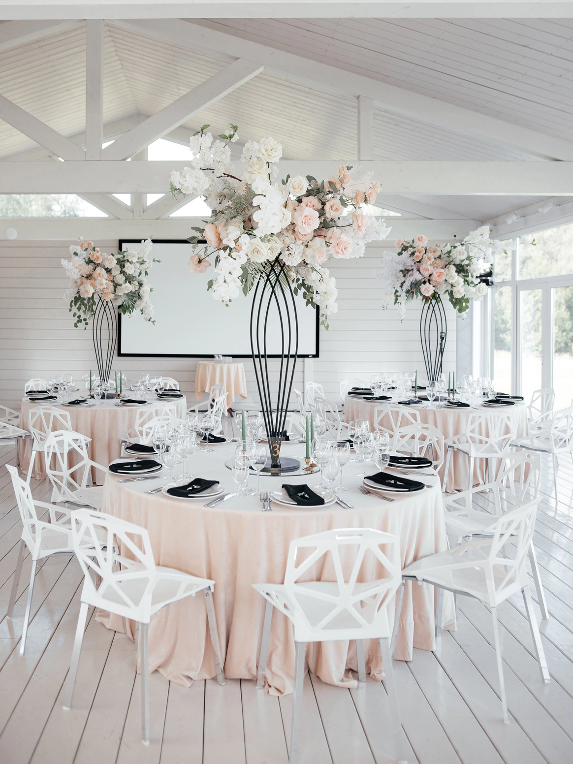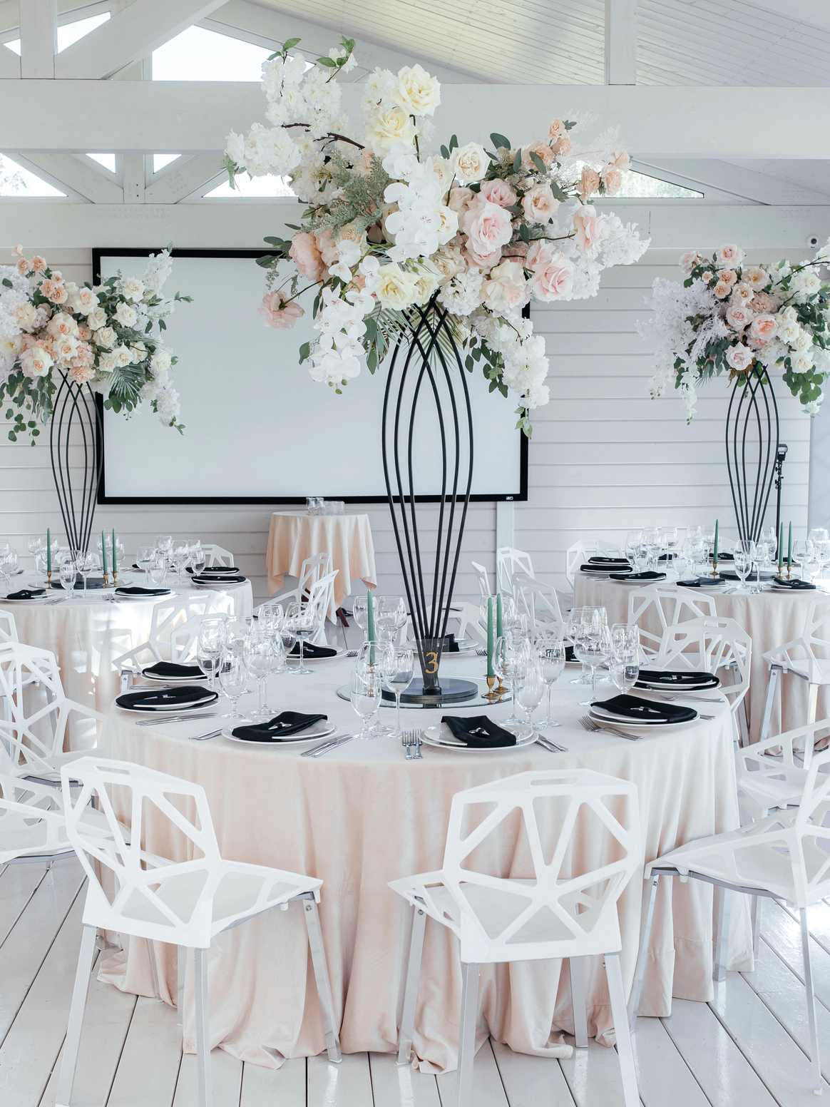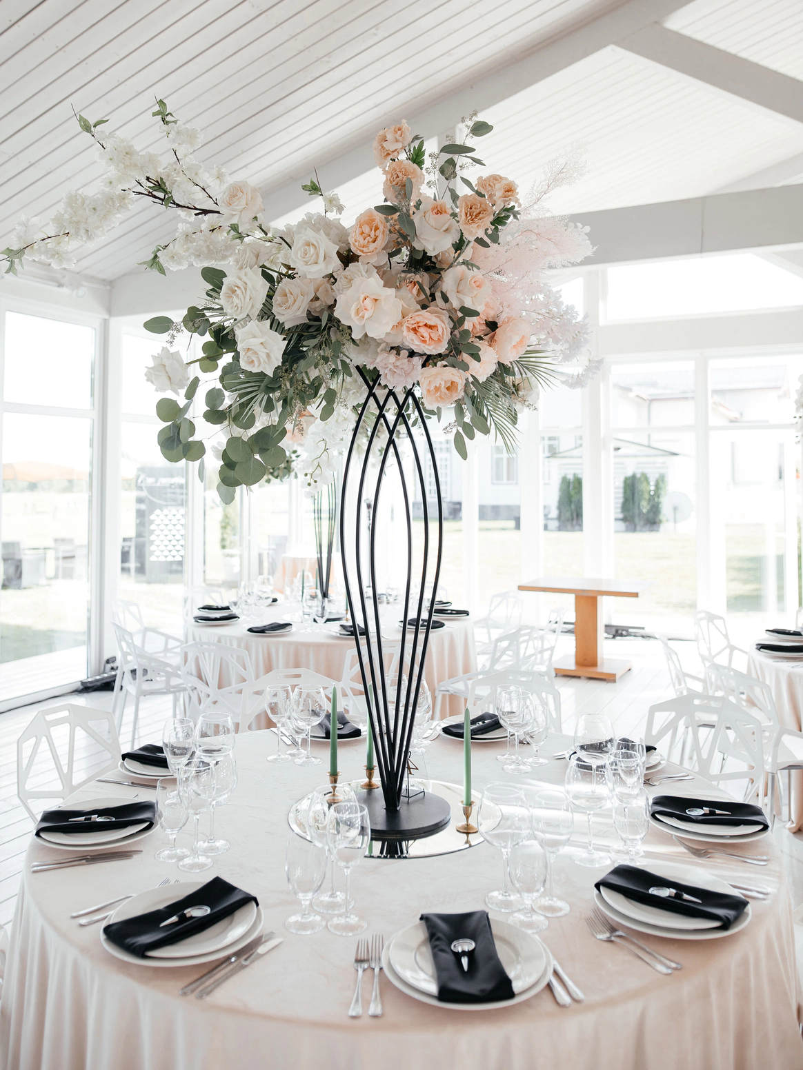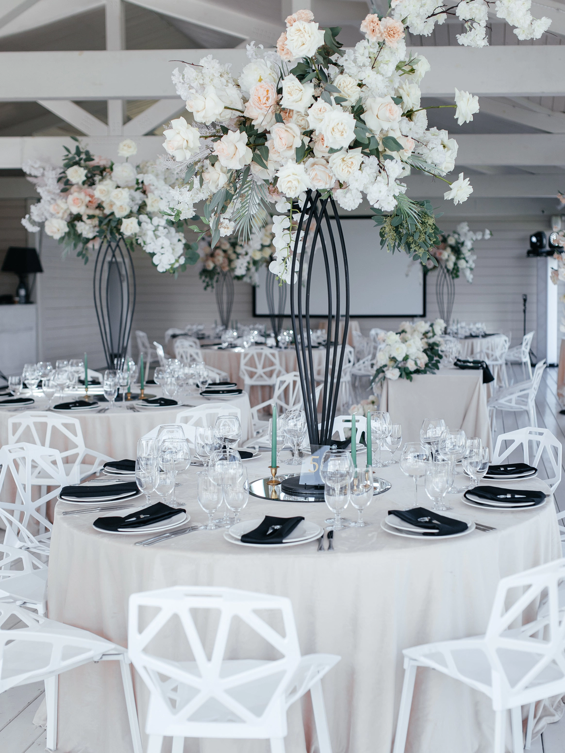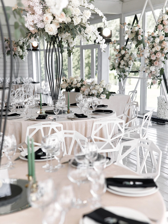 Чёрное и белое, линия и лепесток, структура и воздух — в этом проекте декор стал отражением самой пары: союзом силы и нежности, амбиции и романтики, устойчивости и страсти.
