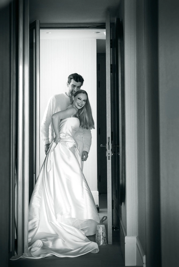 Церемония прошла на открытой террасе с захватывающим видом на закатную Москву — город стал естественными декорациями для признаний и клятв.