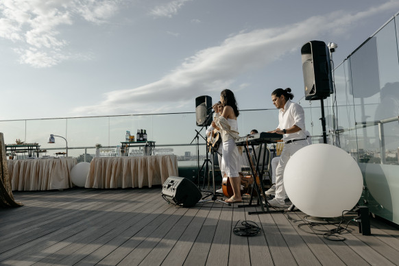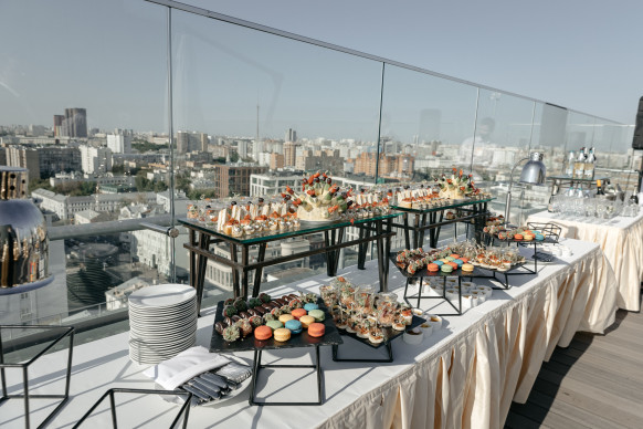 Веранда на крыше отеля Novotel Moscow Centre – открой для себя всю Москву с новых высот. Панорамная летняя веранда площадью 225 кв. метров на 19 этаже отеля Novotel Moscow Centre под открытым небом сделает Ваше торжество незабываемым. Кроме панорамного вида Вас ждет изысканная сервировка, фуршетное/банкетное меню, обширная карта напитков. Веранда отеля идеально подойдет для проведения свадьбы и вмещает до 72 человек при банкетной и 100 человек при фуршетной рассадке, а также рассадке театр. C веранды отеля открываются захватывающие виды на Moscow City, Останкинскую башню и Сталинские высотки. Запечатлейте важные моменты Вашей жизни снимками на панорамной веранде отеля Novotel Moscow Centre. Novotel Moscow Centre — четырехзвездочный отель в самом центре города в Тверском районе. Окруженный легендарными московскими сценами, историческими улицами и парками, отель имеет отличную локацию, которая позволит запомнить торжество надолго. Остановившись в отеле Novotel Moscow Centre, Вы получите максимум: отель располагает всем необходимым для проведения торжества любого масштаба. Задержитесь подольше и наполните удовольствиями важное событие Вашей жизни: устройте праздничный семейный ужин в ресторане Cote Azur, встретьтесь с друзьями за чашкой кофе в баре Gourmet, наполните жизнь энергией в фитнес-клубе отеля. Novotel Москва Центр — отель, который делает каждый момент запоминающимся.