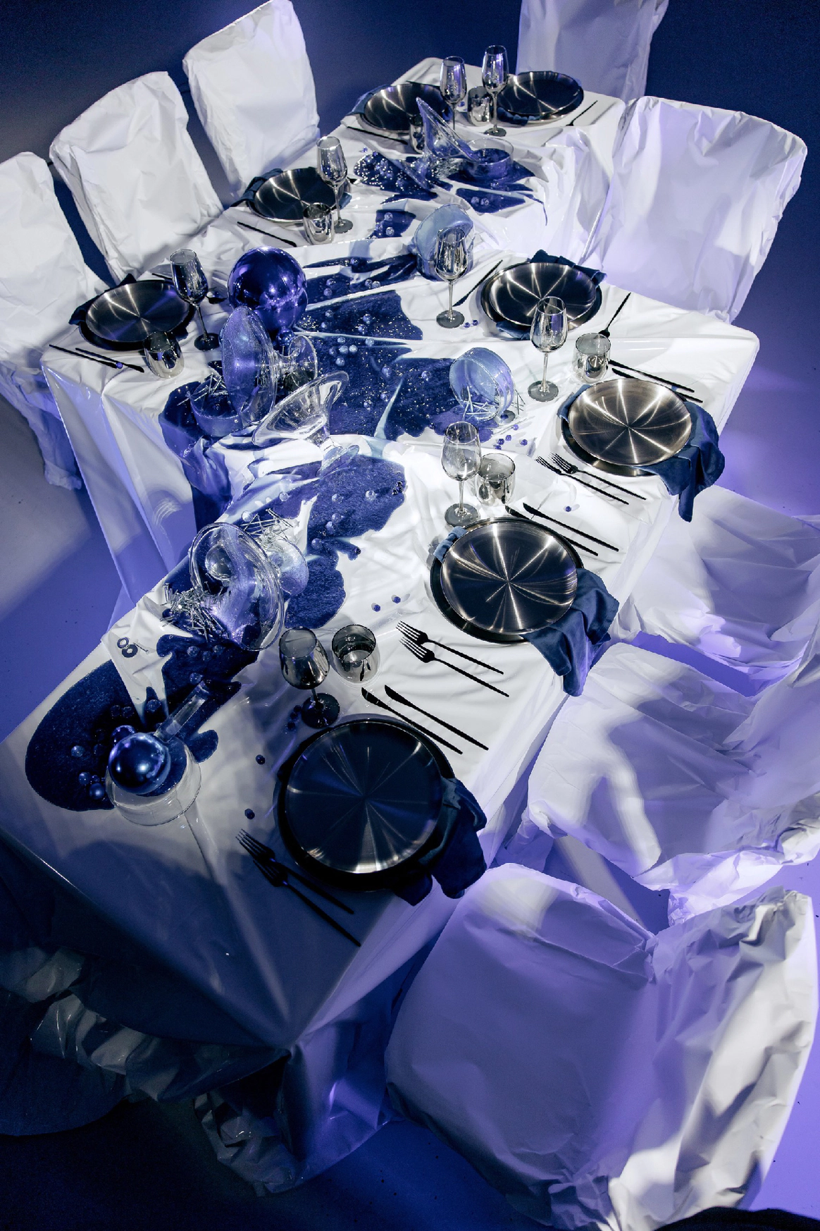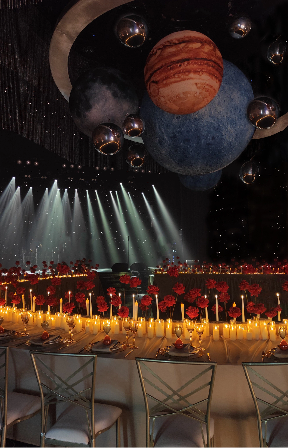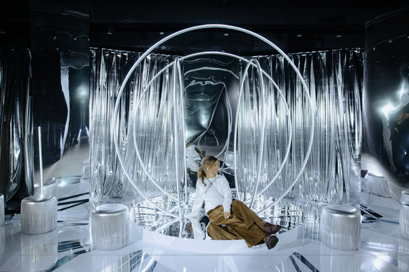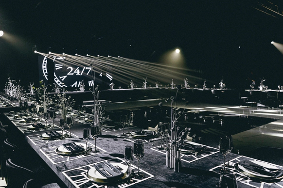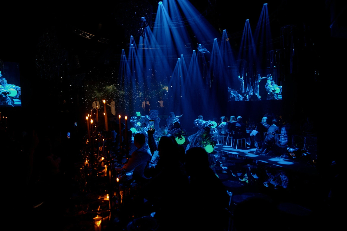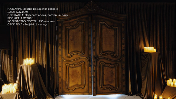 Прошлое было раскрыто через тёплую глубину фактур, настоящее — через строгую структуру, будущее — через свет и технологичную графику линий. Контраст эпох стал образом движения и развития.