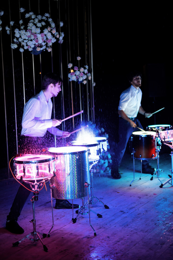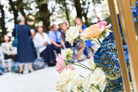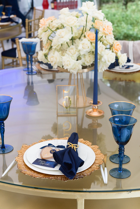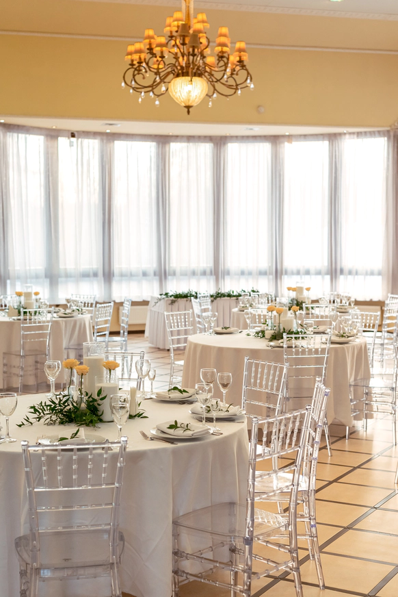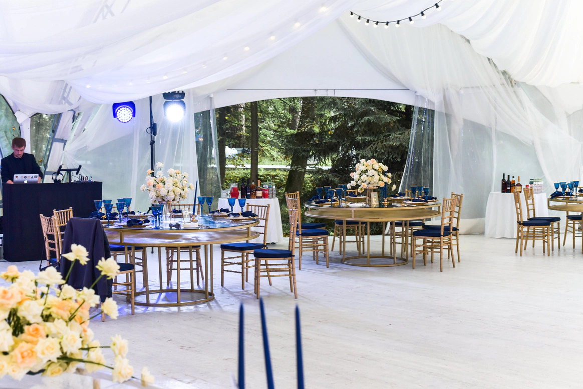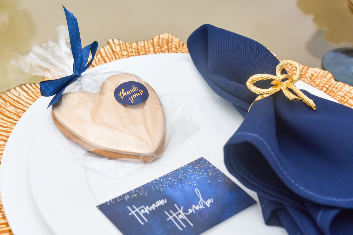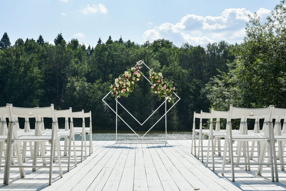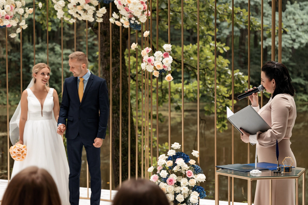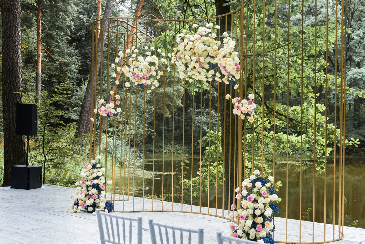 - До свидания - До субботы - До старости Так закончилась первая переписка Сергея и Софьи. Узнав это и увидев безмерно влюбленных ребят, появилась концепция свадьбы - «до бесконечности». Основными цветами в декоре стали глубокий синий и благородное золото, олицетворяющие бесконечную вселенную и звезды. Цветочные композиции из роз, золотые голые столы и янтарные стулья с синими подушками, сервировка, полиграфия и многие другие детали - все это стало воплощением четкой геометрии созвездий и хаоса звезд. Зона выездной регистрации продолжает тему бесконечности вселенной. Великолепная золотая конструкция с композициями из живых роз, диантуса и гортензии,образующими арку, стала символом небосвода на выездной регистрации Сергея и Софьи. Ярким вечерним акцентом стала неоновая вывеска, созданная по макету жениха, и олицетворяющая вечность чувств Софьи и Сергея.
