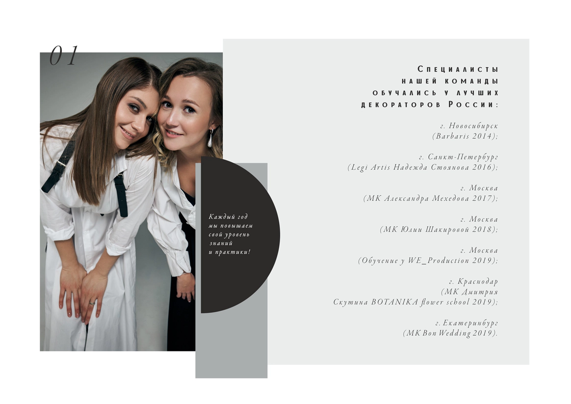 Специалисты нашей команды обучались у лучших декораторов России: г. Москва (МК Александра Мехедова); г. Москва (МК Юлии Шакировой); г. Москва (Обучение у WE_Production); г. Москва (МК Bon Wedding).