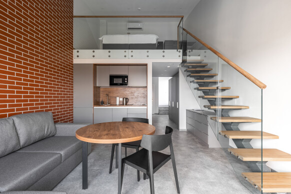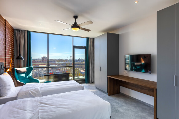 Апарт-отель Ridge расположен в центре города Санкт-Петербург. Это проект с авторским дизайном и гостиничным сервисом. Разработкой архитектурно-планировочными решениями апартаментов выступила дизайнер Зинаида Рухова, где отразила свои профессиональные задумки и ноу-хау для нашего апарт-комплекса. Важным цветом выступает - глубокий синий оттенок мебели, переходящий на другие элементы, собирающий, связывающий их в единое целое. В целом, RIDGE - это лаконичные формы и функциональная сдержанность с яркими деталями. Таким он задумывался и таким получился. Стильное, умное, интеллигентное, уникальное место. В апарт-отеле есть зона коворкинга, где разработкой занялись Архитектурное бюро Modgi Group. Коворкинг расположен на втором этаже отеля. Задачей проекта было создание дизайна современного эргономичного пространства, в котором могут с комфортом работать и общаться. Стиль интерьеру задают перегородки из армированного стекла с металлическими вставками, уникальными для каждого выделенного пространства. Рабочие пространства коворкинга разграничены коридором. Перегородки оснащены консолями с обозначением рабочих зон. Для удобства навигации на пол нанесены красные полосы, показывающие направление движения. Одним из центров притяжения и неофициального общения становится уютная зона кофе-поинта с кухней, которая привносит в интерьер необходимый элемент домашней обстановки. Фактура, оттенки теплого дерева и кожи поддерживают зонирование на контрасте с холодной бирюзовой тканью и металлом. Важной задачей стала интеграция логотипа. В виде графического повторяющегося орнамента он размещен на части вертикальных поверхностей, становясь неотъемлемой частью визуального образа. Здесь созданы все условия для комфортного проживания и каждая студия полностью укомплектована всем необходимым для жизни. Вся техника в апартаментах марки Bosch: холодильник, фен, утюг, чайник, микроволновая печь, посудомойка, кухонная плита, стиральная машина. В апарт-отеле на всей территории беспроводной интернет и у каждого гостя свой персональный доступ к точке Wi-Fi. К услугам гостей: химчистка, консьерж-сервис, камера хранения, крытый паркинг и зона коворкинга.