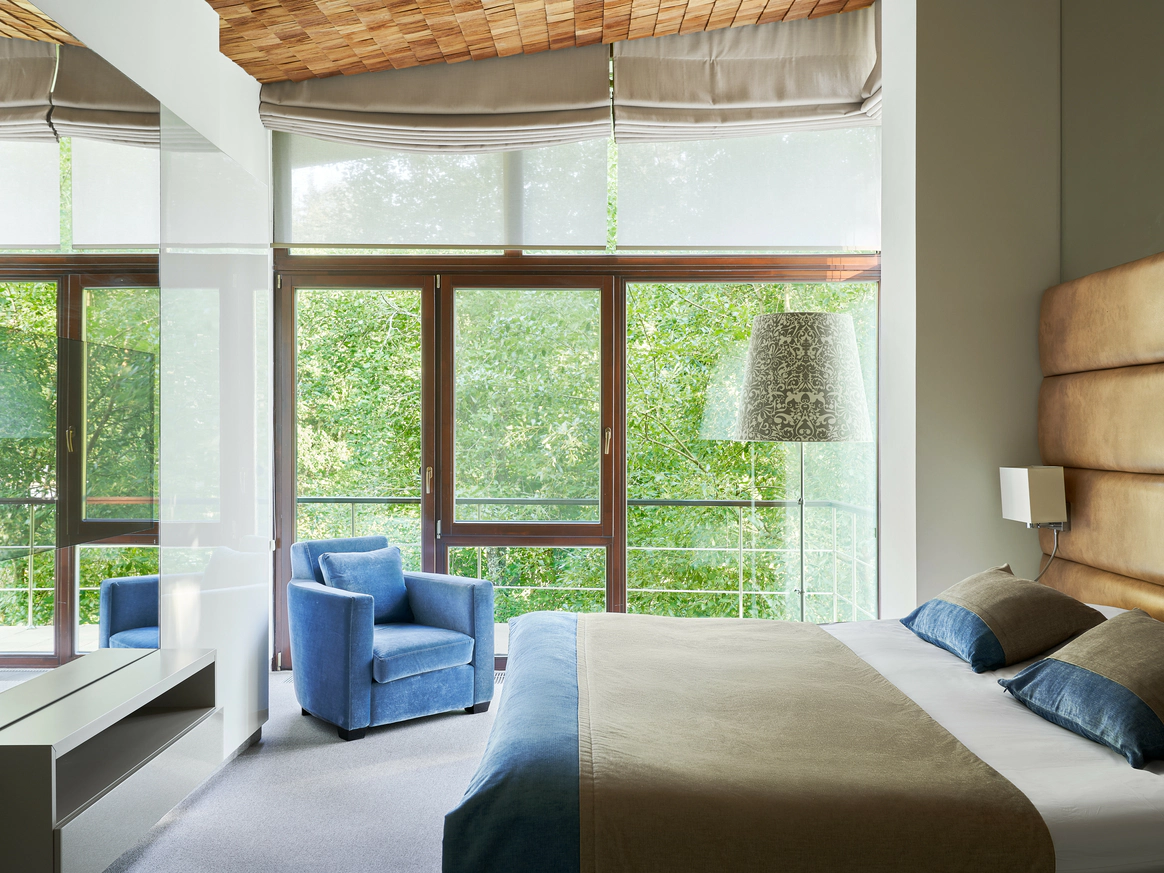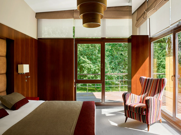 Дизайнерский бутик-отель РОДНИКИ — идеальное место в Подмосковье для красивой камерной свадьбы: живописная территория с сосновым лесом, виллы премиум-уровня, элегантный ресторан с выходом к фонтанам, спа-комплекс и чуткий к желаниям гостей сервис. На территории отеля расположены шесть дизайнерских двухэтажных вилл ассиметричной формы. Благородные интерьеры с отделкой из мрамора и орехового дерева, дизайнерская мебель, уютная атмосфера очаруют взыскательных молодоженов и их гостей. Еще одним местом притяжения в отеле является элегантный ресторан с высокими потолками, панорамными окнами, камином и выходом к фонтану. В дни свадьбы территория отеля полностью находится в распоряжении молодоженов и их гостей. Сотрудники позаботятся о размещении и комфортном пребывании в отеле каждого гостя, а для жениха и невесты предоставят в подарок празднично оформленный номер люкс, специальную спа-программу, а также площадку для регистрации и фотозоны.