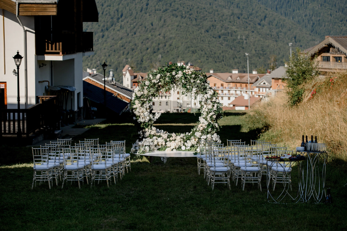 Свадьба на высоте. Роза Хутор — круглогодичный горный курорт в окружении уникальной природы и с самой современной инфраструктурой. Вы можете провести свадьбу или другое торжество и мероприятие в любое время года — на Роза Хутор можно подобрать идеальную для вас площадку круглый год. Каждая локация уникальна и красива по-своему, но неизменным будет одно: горные вершины на 360 градусов, первозданная природа и высокий уровень сервиса. Круглогодичный горный курорт Роза Хутор — это: — более 10 площадок для выездной регистрации вместимостью от 10 до 1000 человек — 20 отелей: гостиничные номера, шале в альпийском стиле, апартаменты и клубные дома — более 20 ресторанов и банкетных залов Основные локации и залы для мероприятий находятся на разных высотах и все они совершенно уникальные по направленности: — для полного таинства мероприятия — атмосферный кемпинг Нахазо. Он находится вдали от туристического потока в окружении первозданной природы и панорамы гор; — для тех, кто ищет сочетание курортной инфраструктуры и природы — в Горной Олимпийской деревне и в Роза Долине; — для масштабных и крупных событий — МКК «Роза Холл». Это самая крупная банкетная площадка курорта. Вам нужно только выбрать то, что подчеркнет ваш неповторимый стиль. Удобное расположение и развитая инфраструктура курорта Роза Хутор не доставит хлопот с трансфером, так как рядом находятся аэропорт, железнодорожный вокзал и скоростная автотрасса, по которой легко можно добраться до курорта от побережья Чёрного моря. Профессиональная команда организаторов мероприятий с радостью поможет реализовать ваши желания. Уют и атмосфера свадьбы будут сопровождаться высокими стандартами обслуживания и полной отдачей команды организаторов Роза Хутор. Дополните торжество неповторимыми эмоциями и теплыми воспоминаниями в окружении сказочной природы и горных вершин.