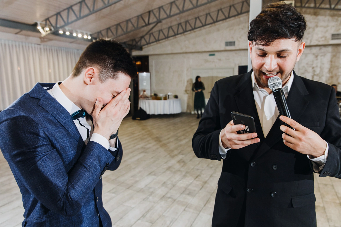 Меня уволили с работы за месяц до собственной свадьбы с любимой работы. И я не знал что делать, но очень хороший друг, предложил мне провести 2 корпаротива в один день, я сказал "ого давай". Мне не понравилось, но потом решил попробовать ещё раз и сильно втянулся в эту профессию. Сначала, как утверждают коллеги и заказчики, моя харизма вытаскивала мероприятия, но скажем разом добавляя новые способности, я смог стать таким ведущим, которого стоит выбрать на праздник. Любовь и юмор, те киты, на которых уверенно держится моё ведение. Импров. и харизма - приятный бонус без регистрации и смс. Спасибо вам, за просмотр моей страницы .