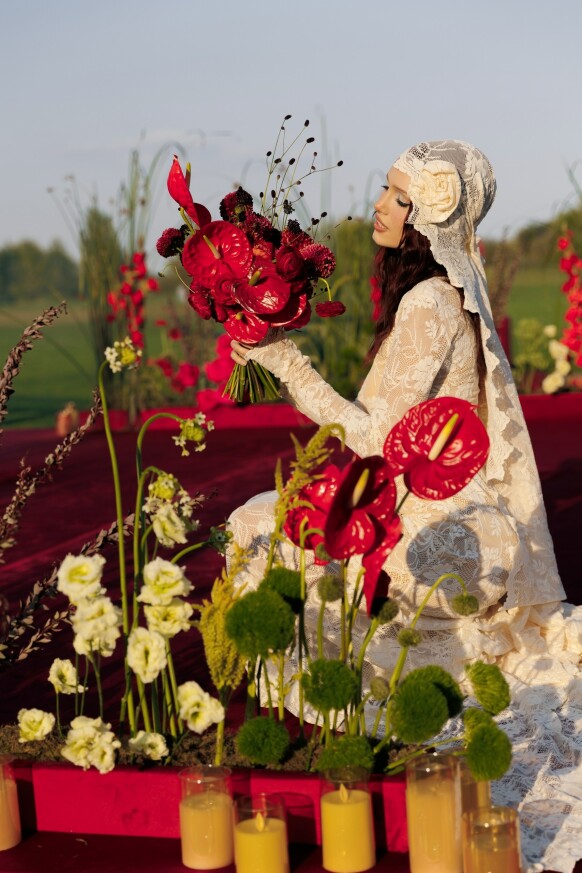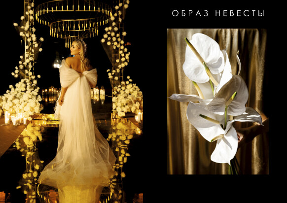 Для букета невесты мы выбрали стильные белые антуриумы - невероятный по своей красоте цветок, который еще раз подчеркнул исключительный вкус невесты.