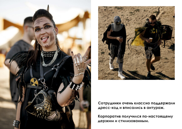 В этом году летнее событие мы стилизовали под постапокалиптическую тематику. Проект переносил гостей в мир после глобальной катастрофы, где из руин прежней цивилизации рождается новая общность, готовая покорять будущее. Вдохновлялись эстетикой сериала Fallout, фильмами Безумный Макс и Дюна, и конечно же, фестивалем Burning man.