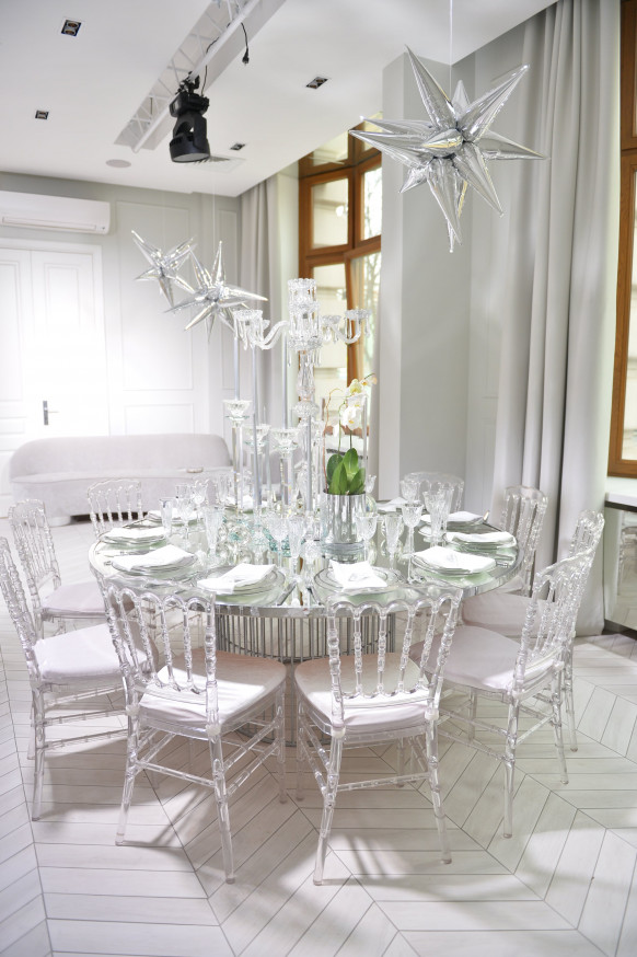 Shakirova Space — пожалуй, самая продуманная и разноплановая локация в центре Москвы. В Shakirova Space все максимально удобно: два просторных зала, фойе, отдельное место для приветственного коктейля. Семейные праздники и уютные свадьбы, проведенные здесь, показали, что такая планировка локации очень удобна и для организаторов, и для гостей. Арендовать пространство можно как полностью, так и отдельные залы. Особенно актуально это при организации фотосессий. Можно смело выбрать только один зал и провести в нем предсвадебную съемку или сборы невесты. Для фуршета или банкетного ужина в Shakirova Space предусмотрен стационарный бар и кухня. Это делает пространство подходящим для любого формата мероприятий. Можно не переживать: кейтеринг будет чувствовать себя не менее комфортно, чем гости. Основатель Shakirova Space — трендсеттер Юлия Шакирова — предусмотрела самые важные нюансы, создав роскошное и функциональное место для мероприятий любого формата. Лаконичный интерьер и грамотное технические оснащение дают возможность легко преображать пространство Shakirova Space, воплощая даже сложные дизайнерские решения. Стилизовать предсвадебную съемку или продумывать оформление для камерной свадьбы в таких условиях становится значительно приятнее и спокойнее. Тем более, что светлые тона, зеркала и воздушность пространства как нельзя лучше сочетаются с чистым и нежным образом невесты. Прекрасное подтверждение этому — обложка Wedding Magazine с Региной Тодоренко, съемки которой проходили именно в Shakirova Space.