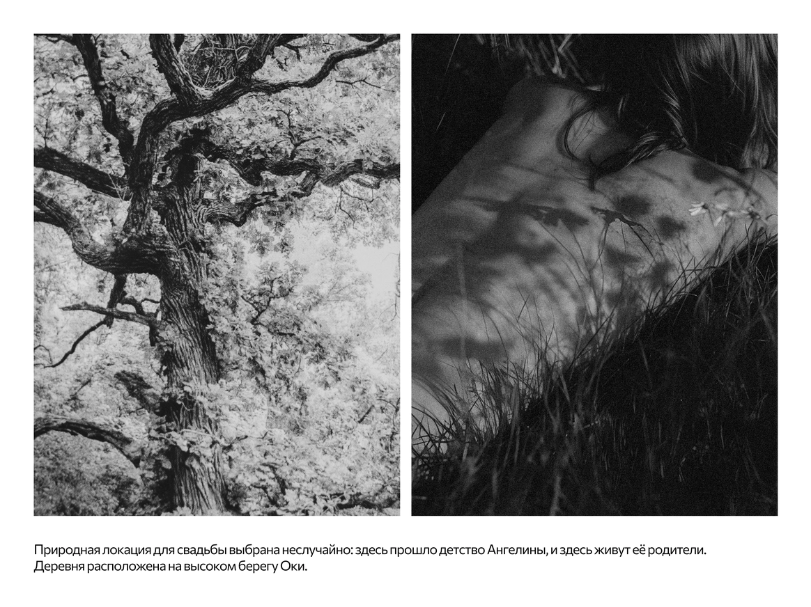 Природная локация для свадьбы выбрана неслучайно: здесь прошло детство Ангелины и живут ее родители. Деревня находится на высоком берегу Оки.