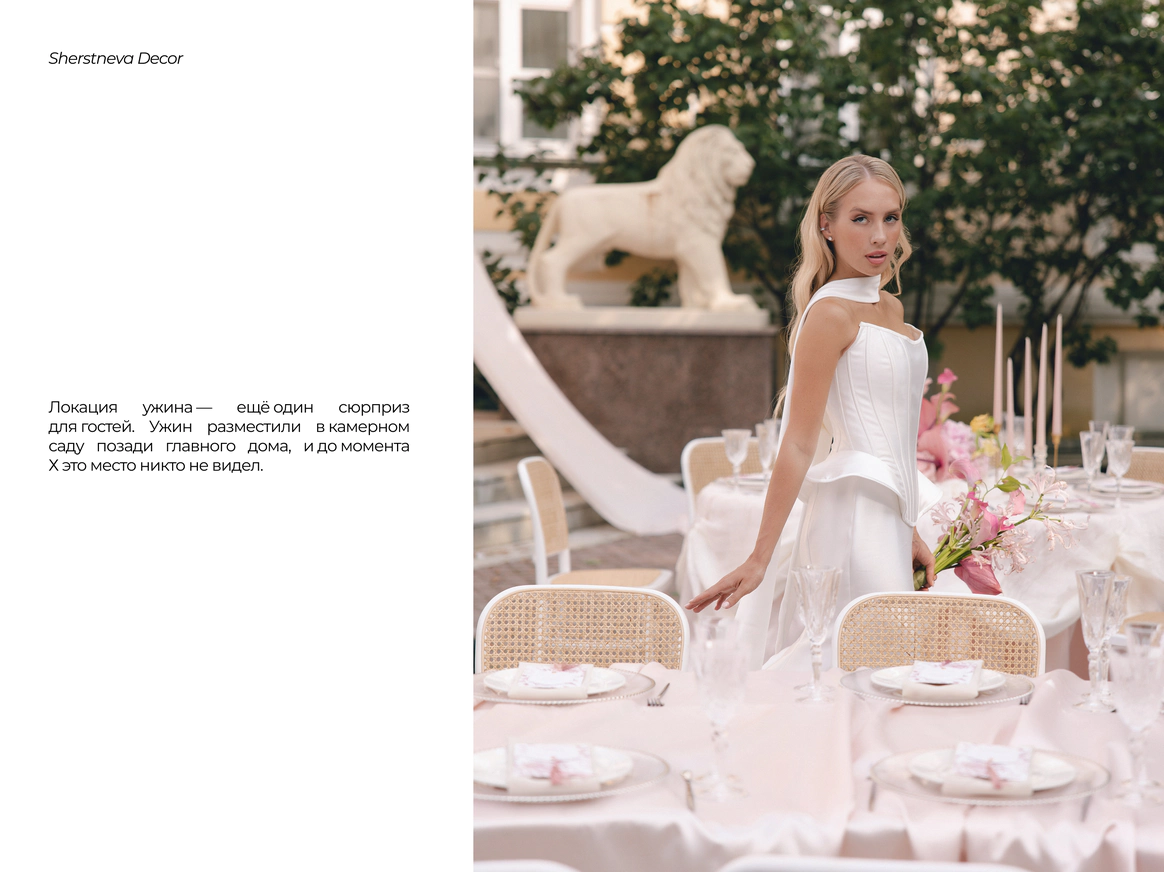 Привет! Мы – творческая команда Shertneva Décor. В шутку называем себя Амбассадорами усадеб, вилл и деревенской эстетики. Все потому, что у проектов на открытом воздухе особое настроение, которое нам очень близко! Сильные стороны нашей команды: - Есть творческий почерк, который считывается в проектах. Всегда формируем персонализированные концепции. - Сильная флористика – у нас есть две популярных в городе цветочных мастерских, в которых экспериментируем и растем - Свой швейный цех – поэтому все текстильные изделия на наших проектах необычные и с душой - Комфортная коммуникация - стараемся делать весь процесс максимально легким и экологичным для наших клиентов и всей команды. - Разумное проектирование - выбираем решения, которые хочется реализовать, при этом придерживаясь прогнозируемого бюджета и возможности воплощения. Хотим, чтобы с первых минут пара и гости почувствовали ту самую историю, рассказанную через стиль и атмосферу. С нетерпением ждем нового сезона и проектов!