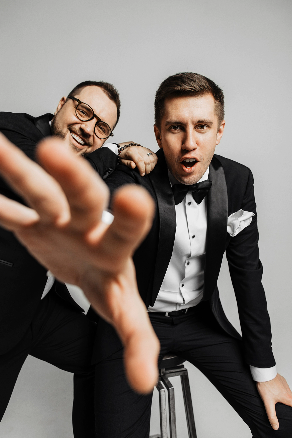 · Два скромных парня с претензией на первое место · Ведущие, друзья, комики, актёры, импровизаторы, эмпаты, фантазёры · Два сына и дочь (не совместные)