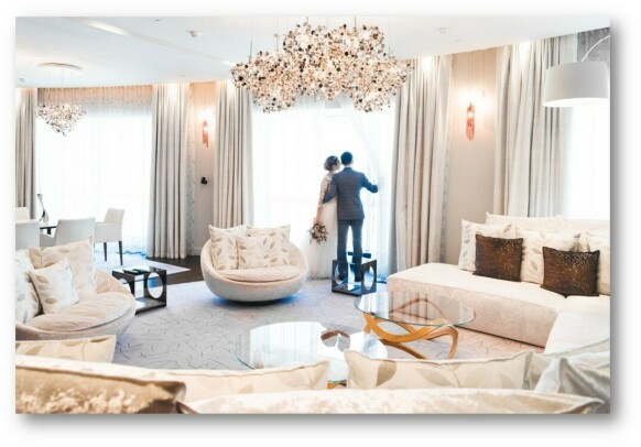 Swissotel Красные Холмы Москва» — пятизвездочный отель на Космодамианской набережной в районе Садового кольца. Отель «Swissotel Красные Холмы Москва» расположен в самом высоком здании на Садовом кольце прямо в центре города, на берегу Москвы-реки. Здесь можно и провести камерную свадьбу на 40 гостей в пентхаусе с частной террасой, и устроить большое торжество в просторных залах отеля с большим количеством приглашенных — до 150 человек. «Swissotel Красные Холмы Москва» предлагает своим гостям услуги стильного SPA-комплекса, бассейн с зоной гидромассажа и джакузи, возможность провести эксклюзивный романтический ужин на крыше отеля с видом на город и наземную парковку с удобным въездом со стороны Садового кольца, которой могут воспользоваться гости и организаторы мероприятий. Особое предложение «Swissotel Красные Холмы Москва» — здесь можно заказать специальный свадебный пакет. Он включает в себя аперитивы для гостей, аренду номера для влюбленных и скидку на аренду банкетного зала или ресторана. Роскошный Пентхаус Люкс с собственной террасой на 19м этаже идеальное место, чтобы воплотить идеи для свадьбы абсолютно разнообразного формата. Элегантный интерьер гармонично сочетает темные и светлые тона, просторная гостиная с уютной диванной зоной переходят в панорамную ванную комнату с захватывающим видом на Москву. Жемчужина номера - открытая терраса – прекрасное место для вечеринки на открытом воздухе!
