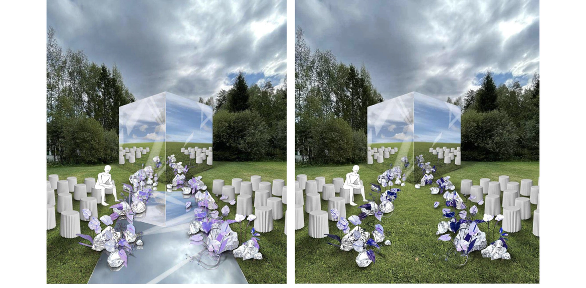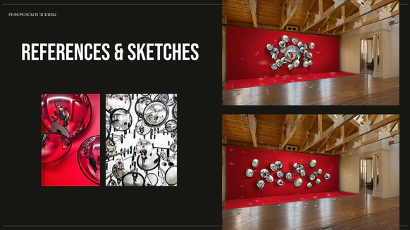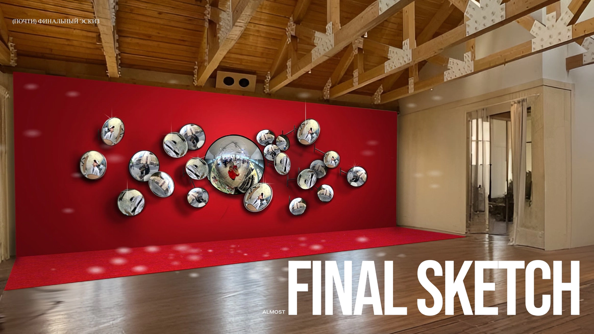В итоге остановились на дорожных зеркалах. Когда их много, они создают очень классную картинку, дают легкое искажение и игру отражений, за счет чего пространство начинает двигаться. Нам показалось, что это как раз тот самый нужный акцент.