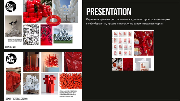 Мы собирали референсы и понимали, что хочется чего-то урбанистического, дерзкого, с геометрией, ярким цветом и контрастом. У нас были мысли насчет надувных объектов, но в процессе мы поняли, что они дают не тот эффект.
