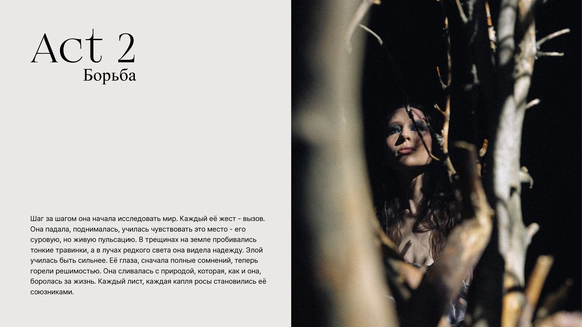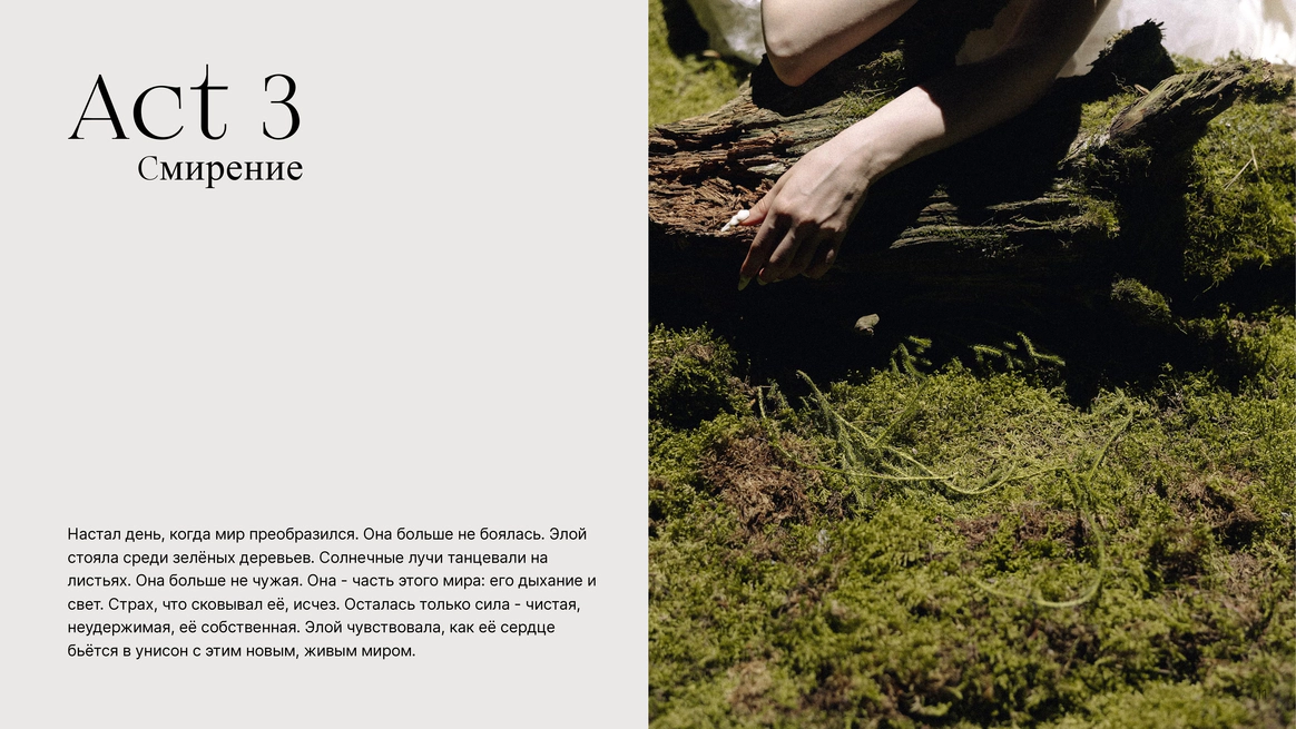 Съёмка «Элой» - не просто визуальная история, это метафора пути, который проходит каждый, сталкиваясь с вызовами мира. Это рассказ о трансформации: от страха перед неизвестностью до обретения гармонии и внутренней силы.