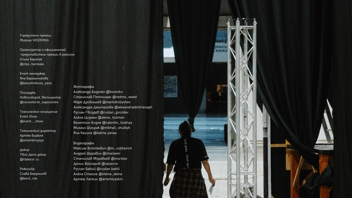 Дважды победители Wedding Awards Сибирь и ДВ' 23 | Финалисты Wedding Awards Сибирь и ДВ' 18,19,22 | Жюри Wedding Awards Ural'24 | Публикации Wedding Magazine, White Sposa, Weddywood, Nevesta.Moscow | Резиденты и преподаватели OSPY | Декораторы премии Wedding Awards Сибирь и ДВ' 24