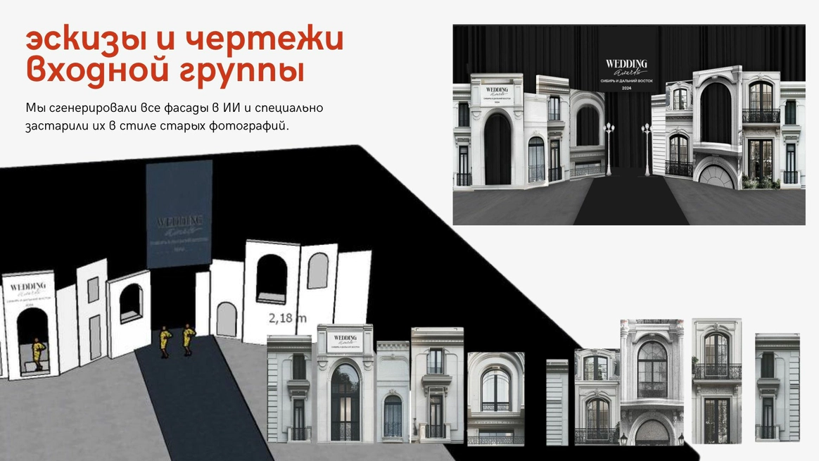 Площадка Экспо-центра представляет собой огромное производственное помещение, которое необходимо было зонировать и грамотно внедрить декорации. Поэтому здесь нужно было мыслить масштабно, крупными объектами.