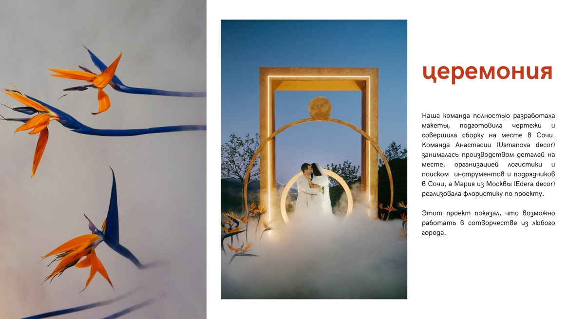 Проект создавался в со-творчестве с командой Usmanova Decor, г. Сочи и флористом Edera decor, г. Москва.
