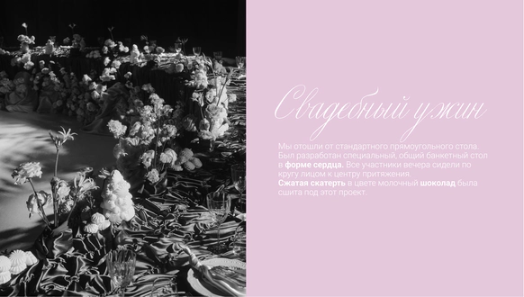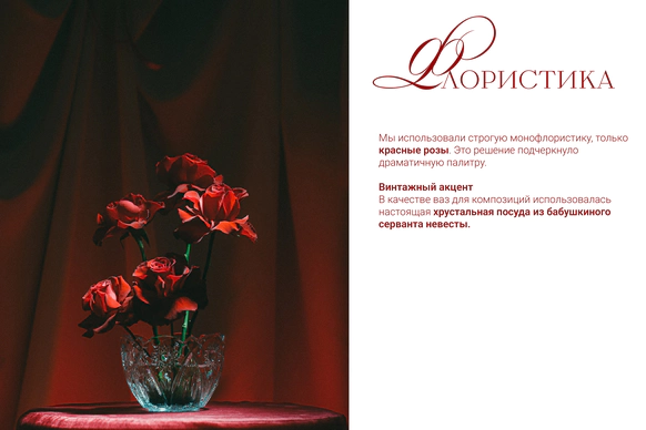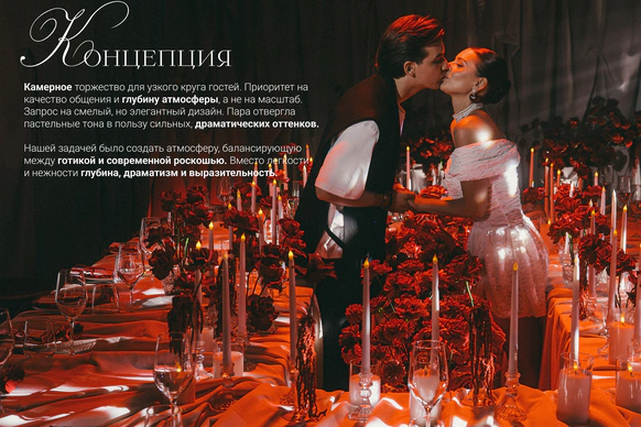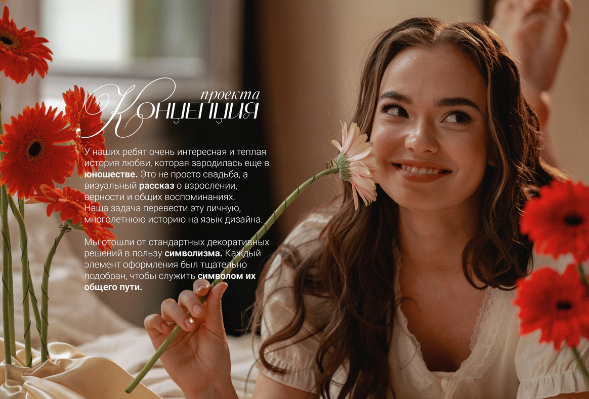 Актуальные тренды – это наши пары и их истории. Это ценности и смыслы, которые мы, как художники, стараемся воплотить в каждом проекте. За несколько мы прошли путь от маленьких цветочных композиций, сделанных на диване в квартире, до стильных проектов с собственным производством и большим складом. Это было похоже на превращение семечка в величественное дерево. Мы можем часами обсуждать с заказчиком даже самую мелкую деталь. Если это важно для вас, то это важно и для нас. Смелые решения и нестандартный подход – это наш воздух. Мы хотим вдохновляться каждым клиентом, создавать что-то интересное и иногда безумное. Мы верим, что в каждом проекте скрыта магия, которую мы вместе создаем.
