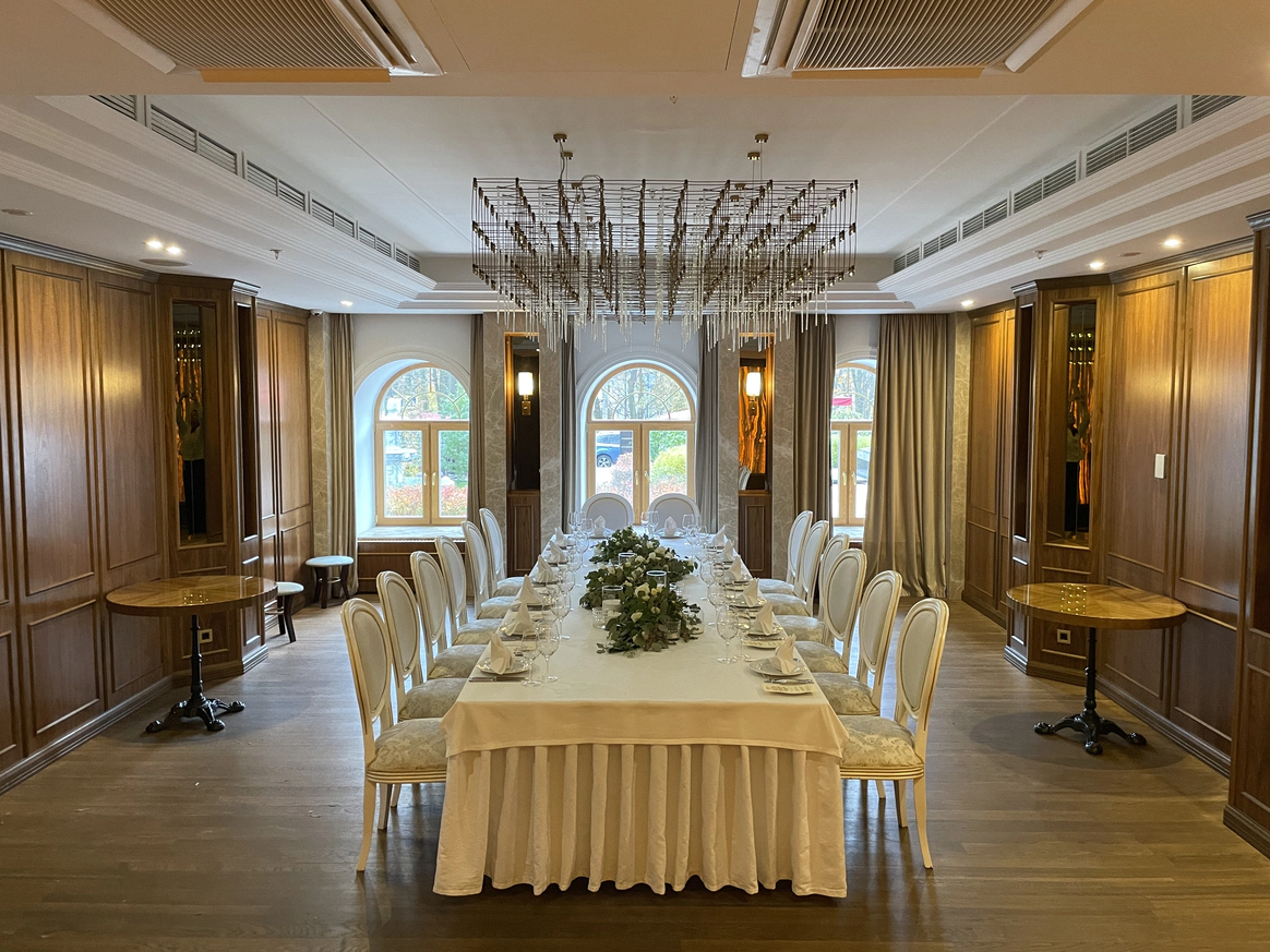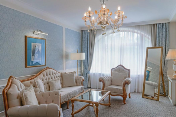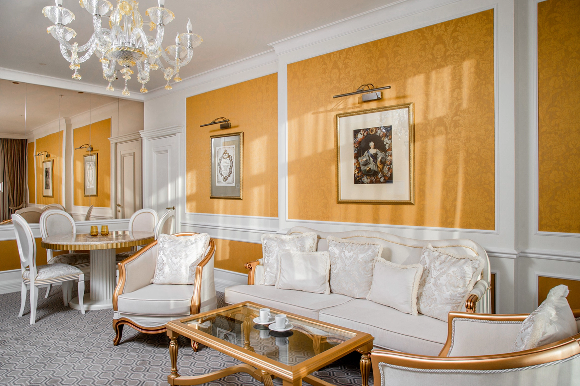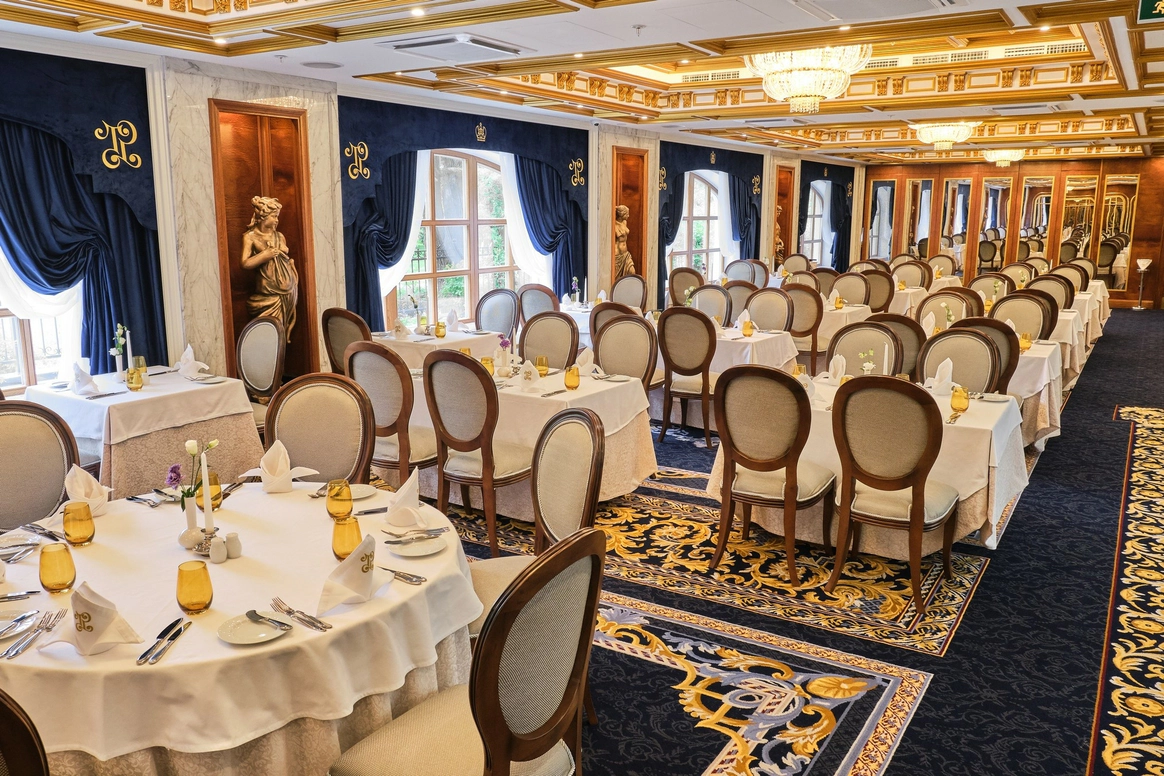 Отель Tsar Palace Luxury Hotel & SPA представляет собой уникальное сочетание царской роскоши, великолепных дворцовых традиций императорского двора, современных тенденций в сфере гостеприимства и высочайшего уровня сервиса. Создатели интерьеров Tsar Palace Luxury Hotel & SPA вдохновлялись великолепным и торжественным убранством Екатерининского дворца, а также классическими формами парковых ансамблей Царского Села. SPA-комплекс отеля Tsar Palace Luxury Hotel & SPA — архитектурная жемчужина отеля. SPA является логичным продолжением отеля, транслирующего имперские традиции. Европейская культурная концепция постулирует стремительный образ жизни, отношение ко времени как к некому быстротечному и эфемерному понятию. Площадь комплекса SPA — 1500м. Гостиница Tsar Palace Luxury & SPA Hotel имеет три уникальных зала подходящих под ваш формат мероприятия. Общая площадь — 760 м², позволяет разместить от 100 до 340 человек.