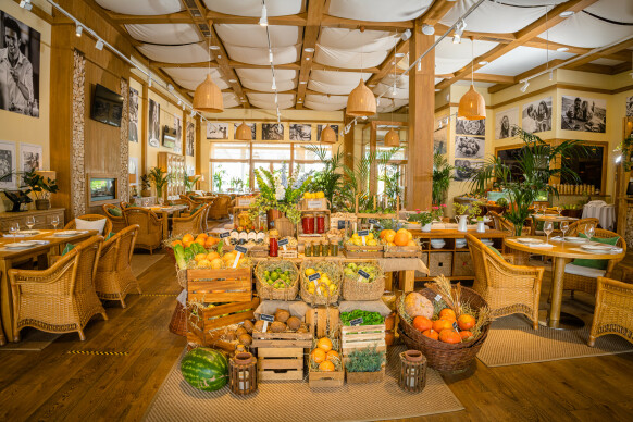 Vesna Novaya Riga Outlet Village — это большой семейный ресторан, расположенный в 20 км по Новорижскому шоссе, который предлагает своим гостям прекрасную возможность ненадолго скрыться от суеты и шума большого города и перенестись в атмосферу легкости и беззаботности. Ресторан воссоздаёт атмосферу благоустроенного загородного дома, в котором одинаково приятно посидеть у камина тесной семейной компанией или собрать всех друзей для шумных посиделок. Передать настроение помогает светлый просторный интерьер с большими панорамными окнами, плетеными мягкими креслами и отделкой из натурального дерева. Ключевую роль, несомненно, играет обилие цветов и растений, превращающих пространство в настоящий зеленый оазис. Vesna на Новой Риге — уникальное место для разноформатных мероприятий: торжественной загородной свадьбы, яркого детского праздника, веселой тематической вечеринки, семейного дня рождения и любого другого важного события. ● 20 км по Новорижскому шоссе Возможность декорирования ресторана на любой вкус ● Идеальное место для семейных кулуарных мероприятий от 5 человек ● Два просторных зала, каждый из которых вмещает до 120 гостей банкетной рассадкой ● Вместительная веранда на 100 человек с широким свободным озелененным пространством перед ней ● Авторская кухня от шеф-повара Коновалова Евгения с акцентом в домашнюю ● Широкая винная и коктейльная карта ● Выездная регистрация на открытой веранде ресторана VESNA ● Детская зона с профессиональным аниматором ● Бесплатный паркинг ● Высокий сервис ● Отсутствие ограничений по шуму Универсальность площадки для разноформатных мероприятий