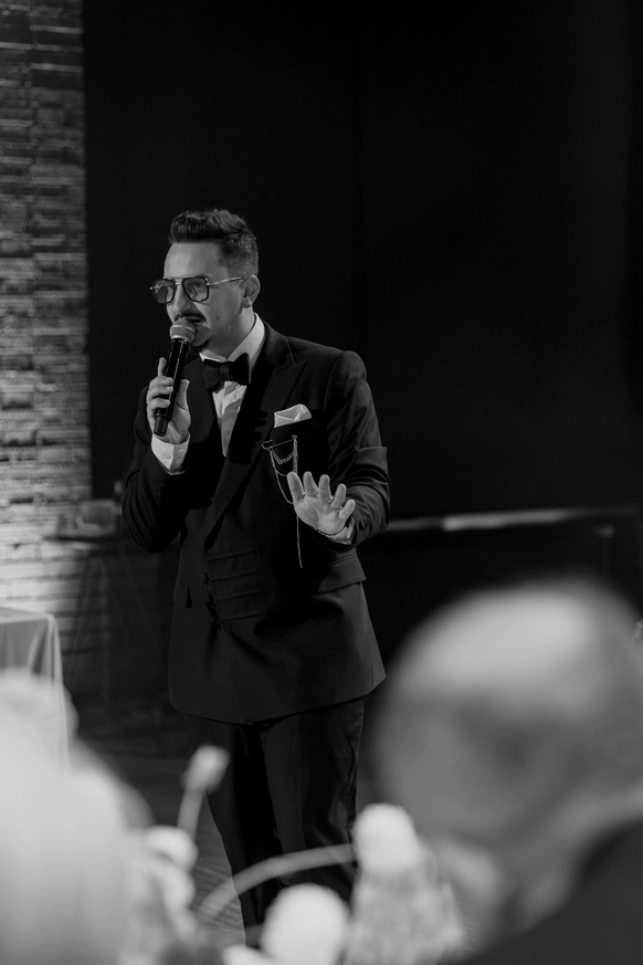 Шорт-лист премии Дарвина Потому что веду с 20 лет. Пока играли в студенческий квн понял, что в лучшем случае буду вести свадьбы и сразу ушел из команды вести свадьбы. По содержанию ведения: романтика и комедия в соседних предложениях, я типичные весы. Не люблю, когда однобоко. По манере: свободно импровизирую в рамках дозволенного в тайминге. Добрейший юмор, даже без самолюбования. Посткриптум: мы еще не решили рассказывать ли дочери, что ее отец свадебный ведущий. Не хочу, чтобы искала похожего на меня.