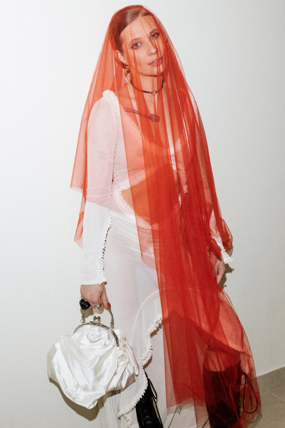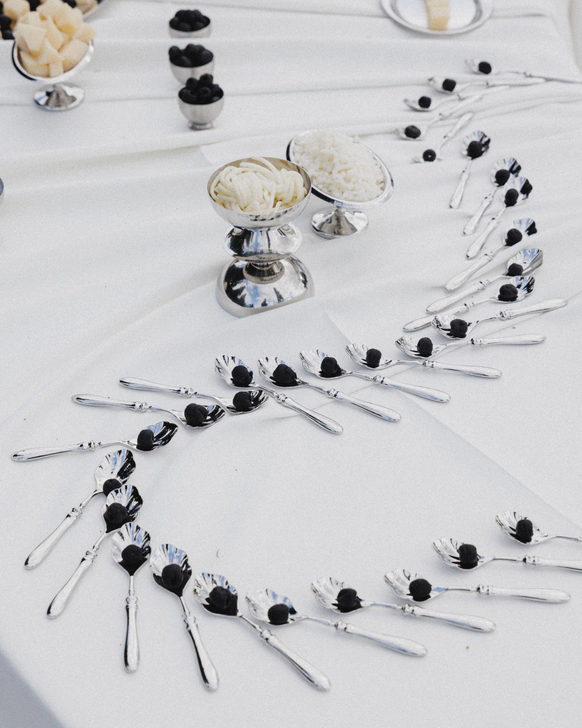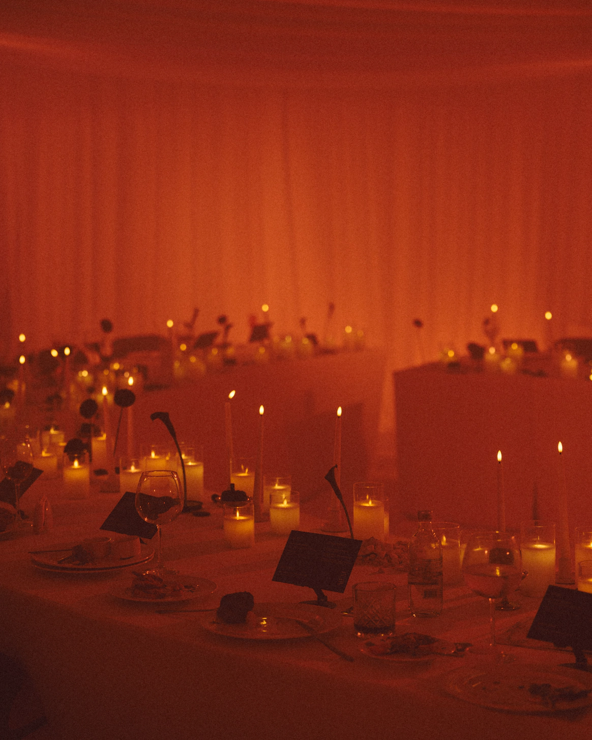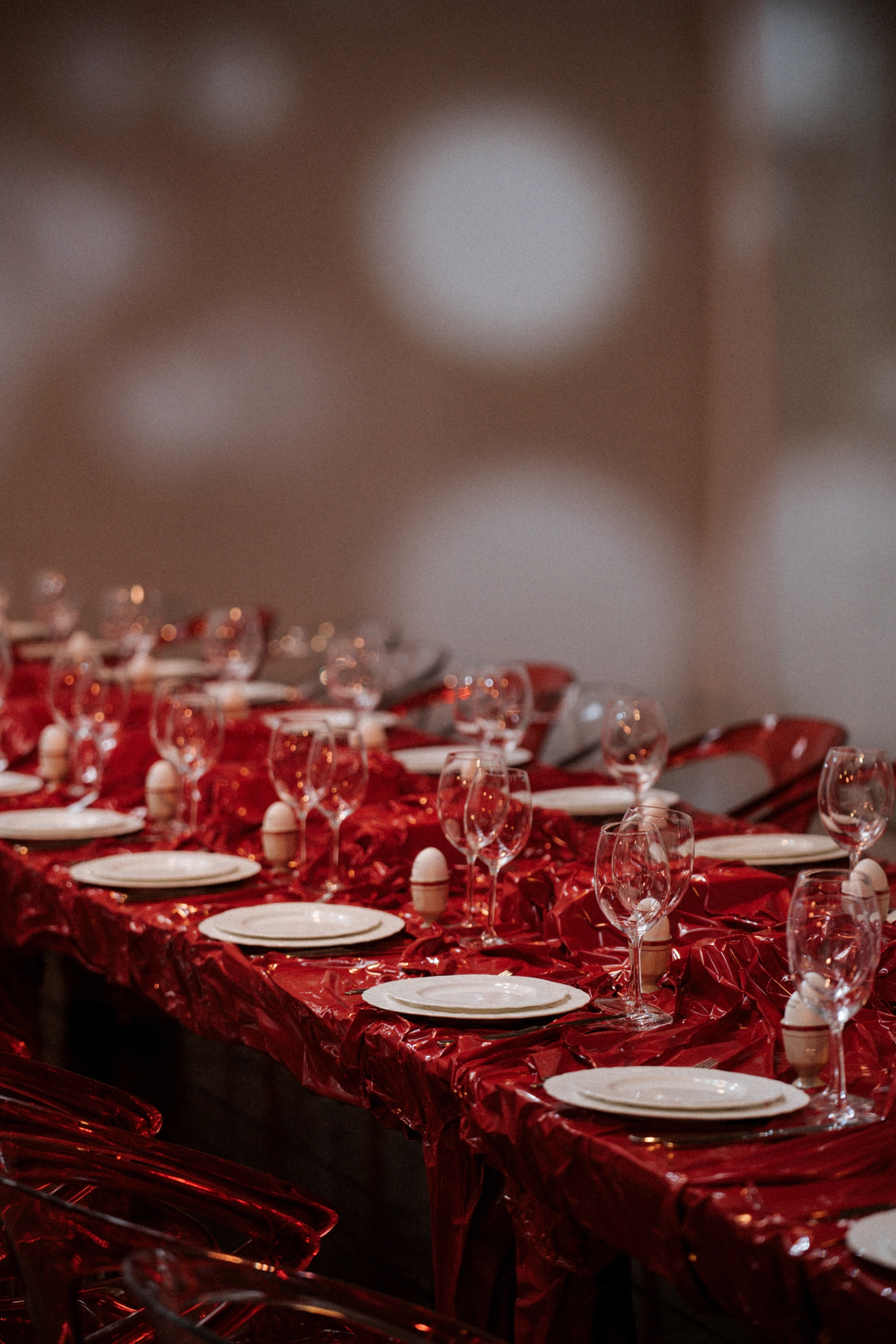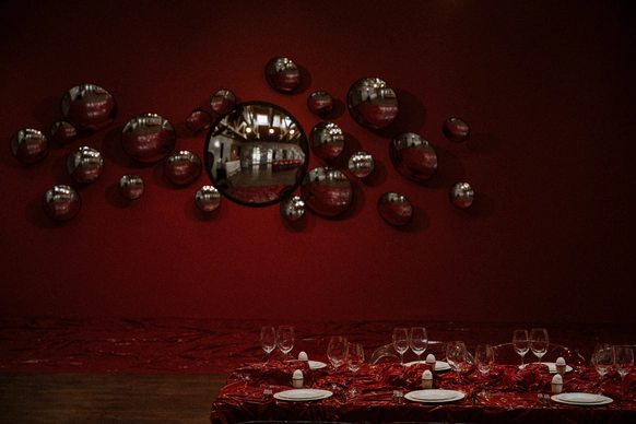 Тема заголовков продолжилась на ужине: по периметру стола тянулось «здесь все ради стиля и драмы». Буквы, обтянутые красной латексной пленкой, выглядели телесно и театрально – прочитать могли лишь любопытные