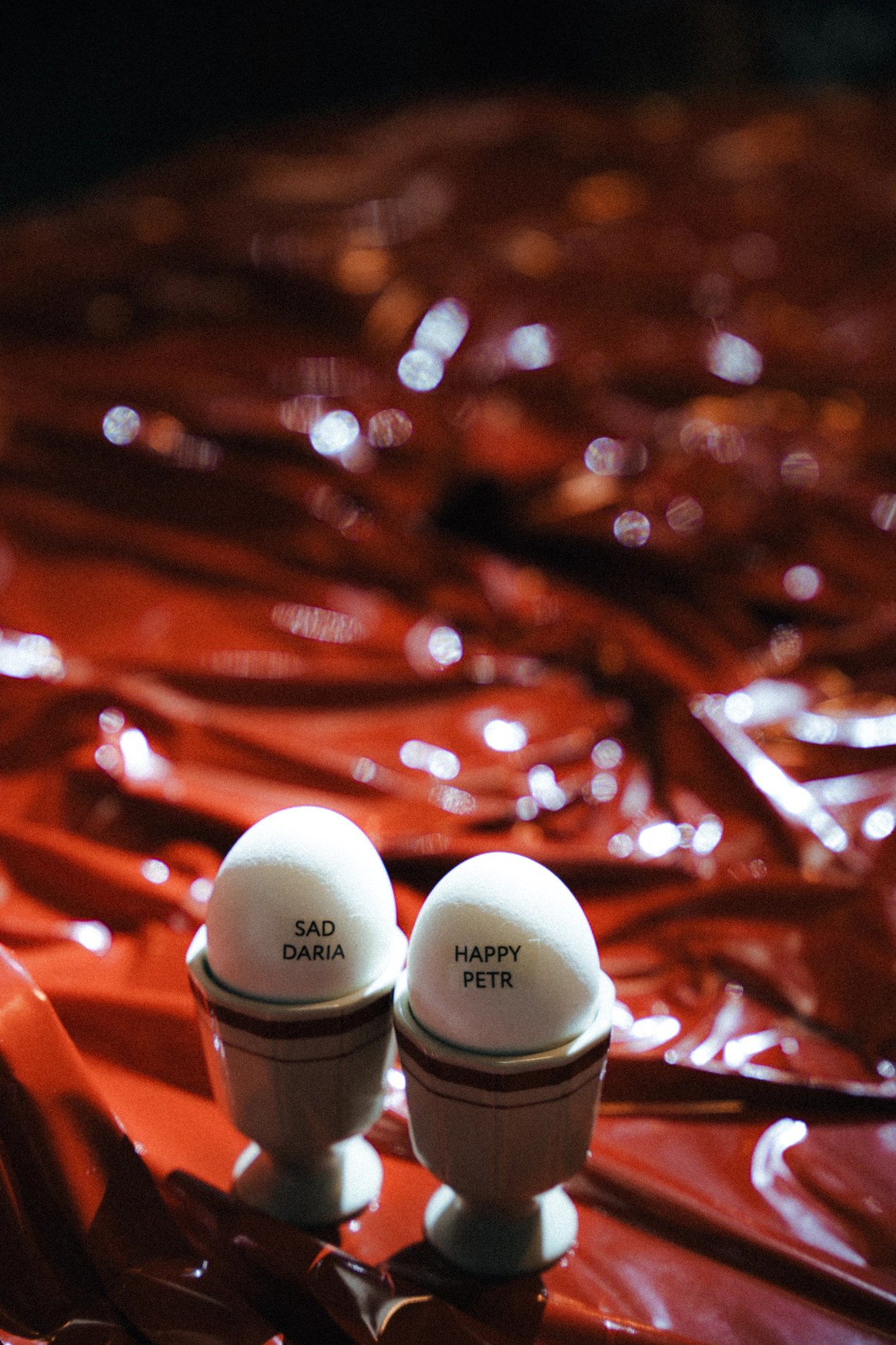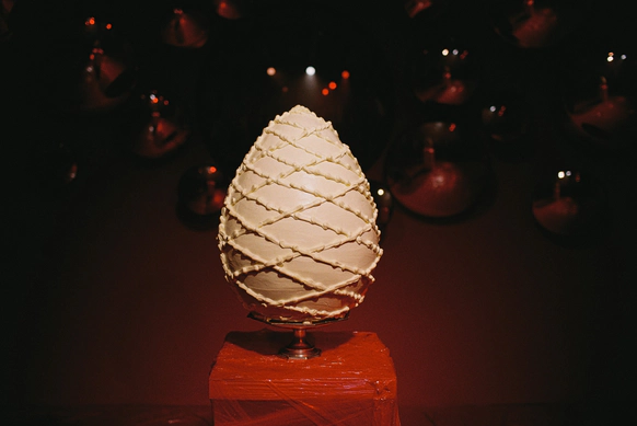 Рассадили гостей небанально: вместо карточек рассадки – яйца с именами гостей. Позже мотив проигрался рефреном – гигантским тортом-яйцом