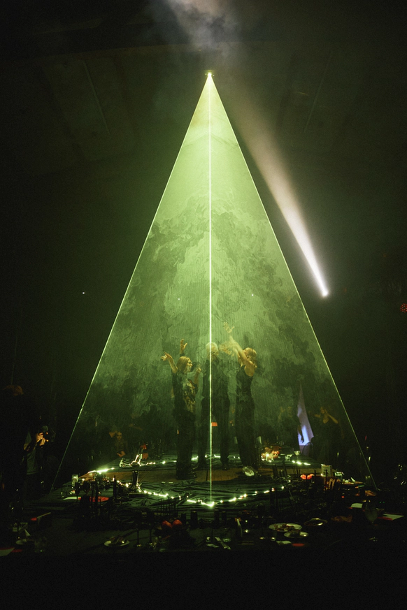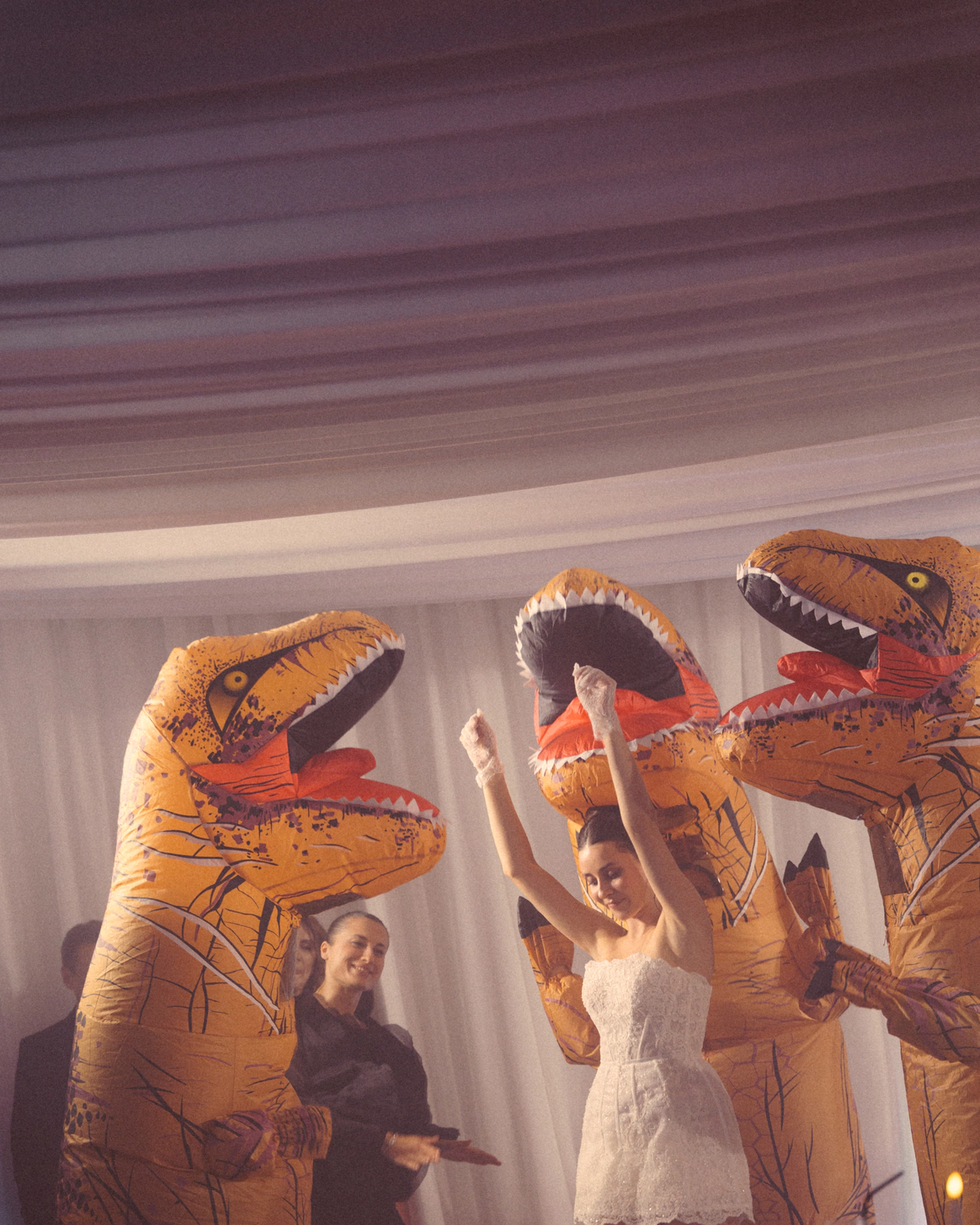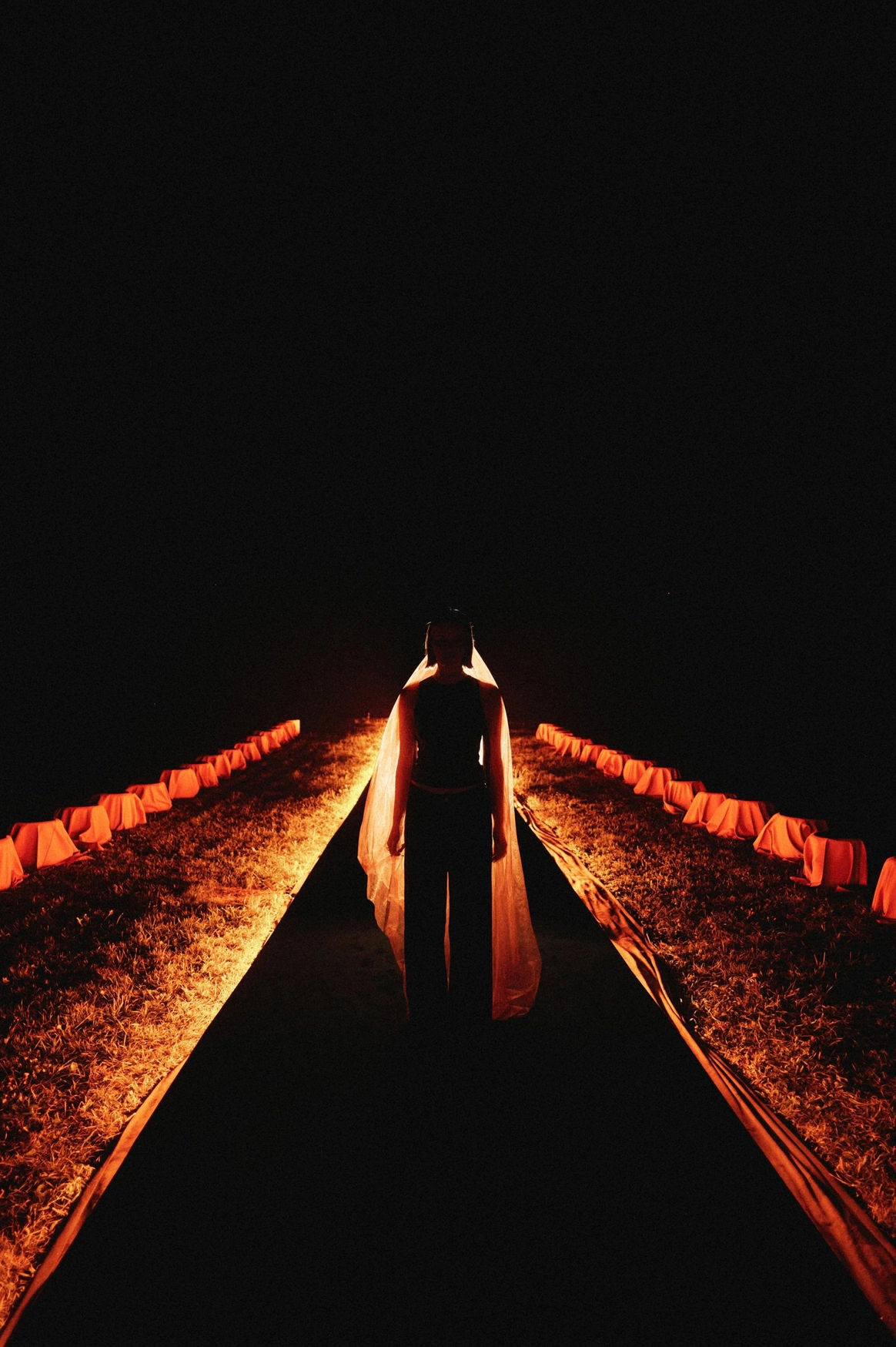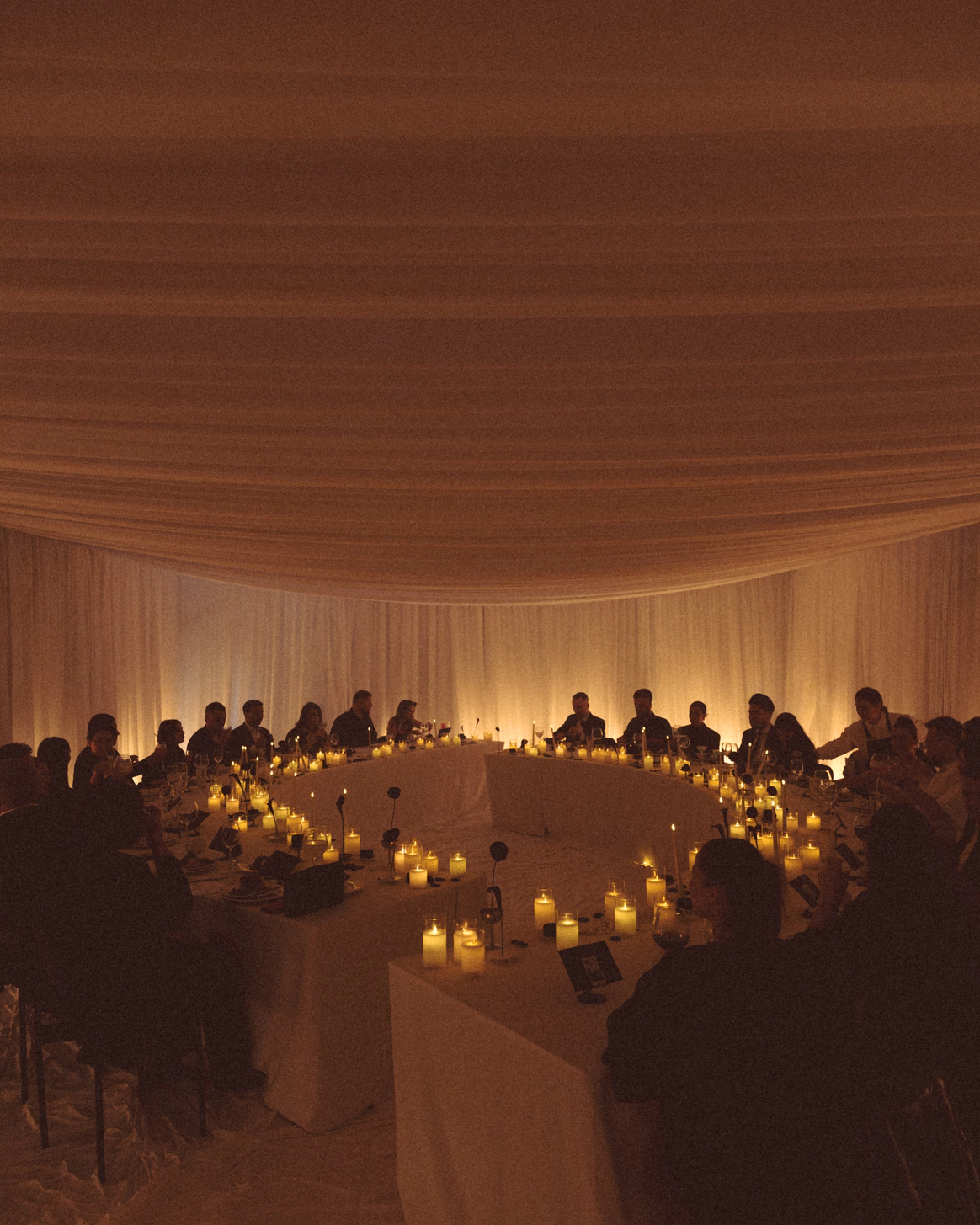 В основе всего лежали честные строительные материалы, которые не прятались за драпировками: натяжной потолок стал и стенами, и задником для церемонии, и черным облаком над ужином;