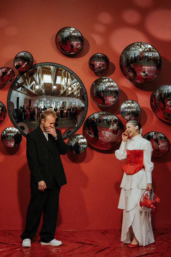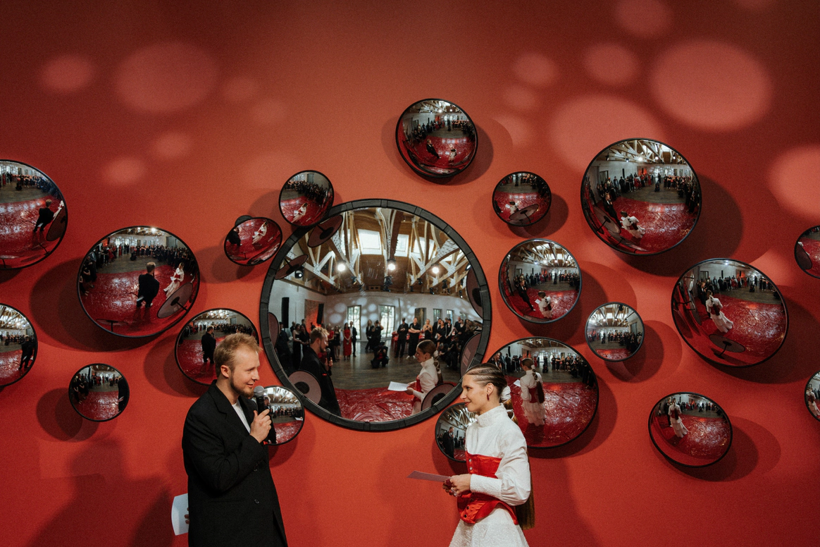 Церемония – мультипликация объекта. 23 зеркальные сферы — отдельная метафора. 23 месяца вместе до того, как стать мужем и женой. Каждая сфера — отдельный ракурс и прочтение происходящего