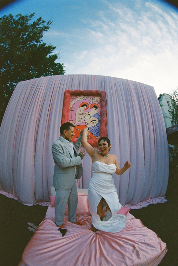 Даша и Петя — ребята без стоп-тем. Они из тех, кто верит: свадьба — не ритуал выдавливания слез. Праздник любви, но дерзости. Задача была сделать озорно, ярко и страстно. Несерьезно о самом важном дне. Торжественно, но с беспорядком