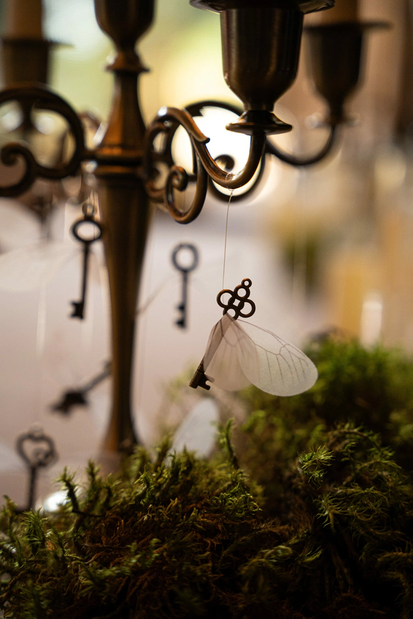Под потолком светились сотни свечей, по полу стелился плотный дым, золотые ключики с крыльями мягко колыхались над столами, словно приветствуя гостей.