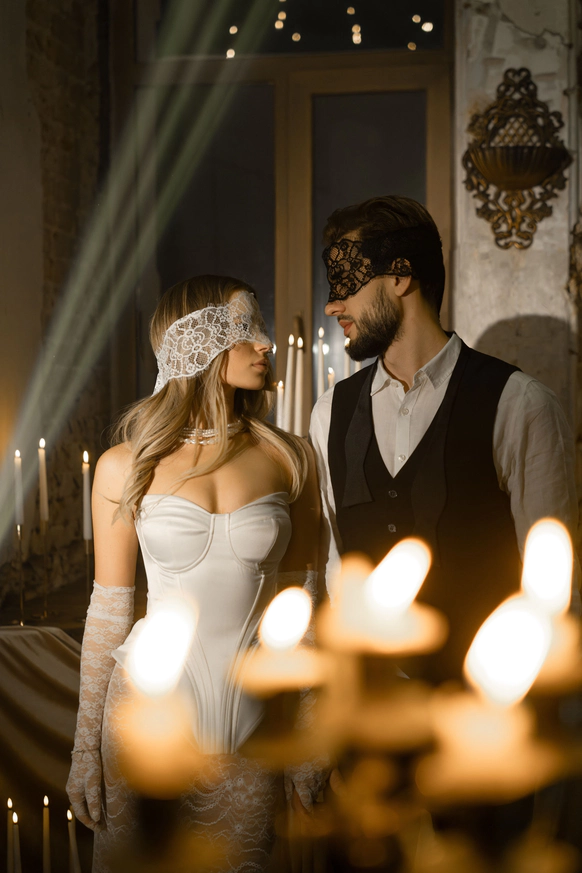 К сожалению, недостаточно места, чтобы описать все тонкости, как мы смогли спроецировать образы пары в деталях на самой свадьбе...